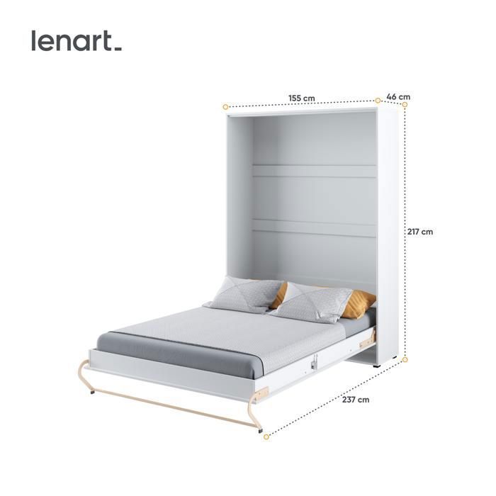 Série **** Consus Pro +**** L'aménagement de petits espaces peut être un défi, cependant, les designers modernes répondent à tous les besoins humains. Lenart Armoire Lit Escamotable Horizontal 140x200 Cm Gris Lit Rabattable Lit Mural"consus" - Lit BUT Description du produit Lenart Série **** Consus Pro +****Lit VERTICAL:Surface de couchage : 90x200cm L : 105cmH : 217cmP (déplié) : 46cm (237cm) Surface de couchage : 120x200cm L : 135 cmH : 217cmP (déplié) : 46cm (237cm) Surface de couchage : 140x200cmL : 155 cmH : 217 cmP (déplié) : 46 cm (237 cm) Lit HORIZONTALSurface de couchage : 90x200cmL : 215 cmH : 107 cmP (déplié) : 46 cm (127 cm) Surface de couchage : 120cm x 200cmL : 215 cmH : 137 cmP (déplié) : 46 cm (157 cm) Surface de couchage : 140x200cmL : 215 cmH : 158 cmP (déplié) : 46 cm (177 cm) Attention la décoration l'éclairage les étagères et extension ne sont pas incluses dans la livraison. Lors du dépliage du lit, le lit s'arrêtera dans n'importe quelle position, il ne tombera pas tout seul. C'est un mécanisme composé de nombreux ressorts avec une force de tension différente. SERRURE DE SÉCURITÉ: Consus Pro+ utilise un mécanisme auto-développé qui assure une ouverture et une fermeture sûres du lit pliant. AVEC FONCTION STOP: ceci arrête le lit dans une position sûre Les lits escamotables sont équipés d'un système de dépliage sécurisé - ressort. Le design simple et moderne permet d'utiliser le lit escamotable dans une grande variété de pièces. Dans la chambre des jeunes ou des enfants pour plus d'espace pour jouer. Les lits escamotables sont équipés d'un système de dépliage sécurisé - ressort. C'est un mécanisme composé de nombreux ressorts avec une force de tension différente ** Le matelas n'est pas inclus dans la livraison. Kasvo MINETA PLUS 2 180x200 cm Lit Escamotable Armoire 120x200cm Supérieur Horizontal Lit Rabattable Lit Mural Blanc/blanc Lit Mural Rabattable Lenart Consus Pro 120x200cm Blanc Dans la chambre des jeunes ou des enfants pour plus d'espace pour jouer. Un matelas normal peut être utilisé pour le lit mais la Hauteur ne doit pas dépasser 18 cm. Les lits escamotables doivent être fixés à un mur solide. Les lits ne peuvent être dépliés que lorsqu'ils sont sécurisés ! (Dont 11,00 € Eco-participation pour lit de 90 à 140 x 200cm)(Dont 14,00 € Eco-participation pour lit de 160 à 180 x 200cm) Avertissement De Sûreté Les lits escamotables doivent être fixés à un mur solide.