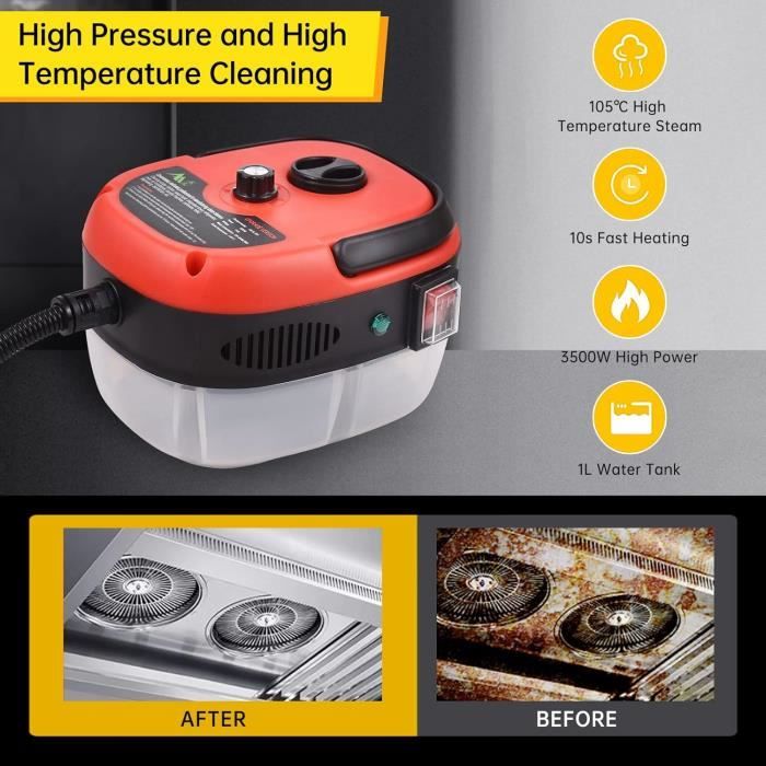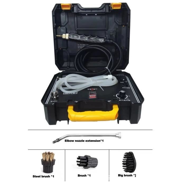 la vapeur haute pression élimine facilement la graisse, la saleté et les taches Temps de fonctionnement jusqu'à 20 minutes. Gagnez du temps et des efforts : découvrez le confort de notre nettoyeur vapeur manuel qui nettoie uniquement à l'eau, sans outils compliqués ni procédures fastidieuses, vous pouvez ainsi effectuer vos tâches de nettoyage efficacement et profiter de plus de temps libre Nettoyeur vapeur haute pression haute tepérature YAERDUN, hotte Vaste set d'accessoires de 10 pièces : le nettoyeur vapeur manuel est adapté aux travaux de nettoyage et de repassage. Grâce au balai vapeur, nettoyez vos tissus, textiles, canapés et sol. Le nettoyeur vapeur s’utilise dans votre salon ou votre voiture, pour laver à la vapeur vos tapis et vos sièges auto. Il peut être efficace contre les punaises de lit Appareil Nettoyage Vapeur Nettoyeur À Vapeur À Main, Nettoyeur À Vapeur Polyvalent 250 Ml Avec Nettoyeur écologique Vapeur Chaude Le nettoyeur vapeur est un appareil électroménager recelant une chaudière remplie d’eau chauffée (entre 70° et 120 °C). Comme son nom l’indique, il permet la transformation de l’eau en vapeur...