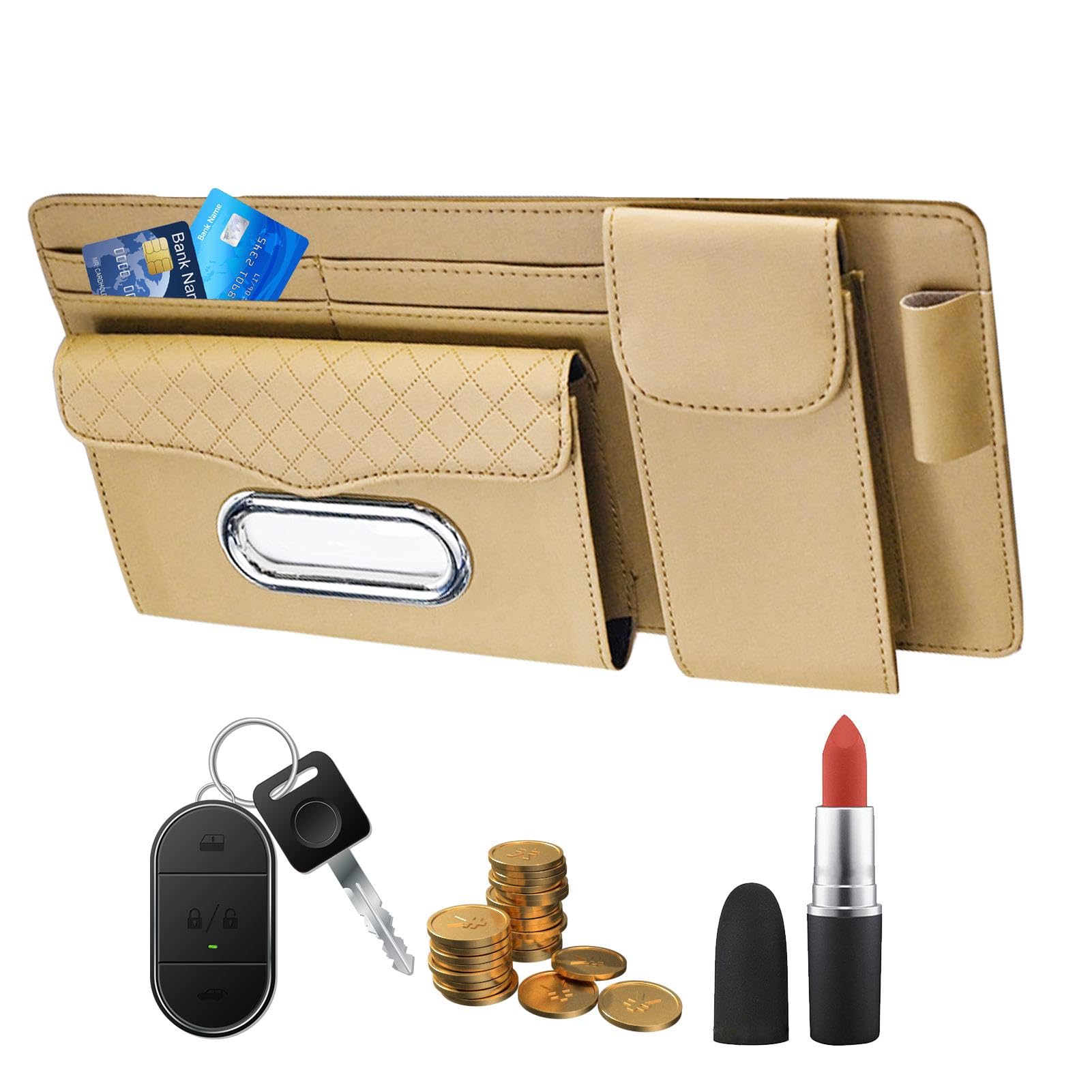 Kartisen Organiseur de poche pour pare-soleil de voiture, camion, VUS, avec plusieurs poches en filet à fermeture éclair (gris Organiseur Voiture Universel SUV VIKSAUN Organiseur De Pare-soleil De Voiture, Camion, VUS - Pochette De Rangement En Cuir Synthétique - Pour Accessoires Intérieurs De Voiture - Pochette De Rangement Pour Carte Grise Pochette Pare-soleil Universelle Léger et pliable, il se range facilement dans la boîte à gants quand il n'est pas utilisé. Organisateur de Pare-Soleil Auto à 6 Poches Zippées - Pochette de Rangement Universelle pour Lunettes, Téléphone, Clés et Cartes - Compatible Voitures, SUV et Camions Installation Instantanée Sans Outil: Grâce à ses sangles élastiques ajustables, l'organisateur s'installe en quelques secondes sur n'importe quel pare-soleil de voiture, SUV ou camion. Organisez vos affaires en un seul endroit : l'organisateur de pare-soleil contient une poche zippée sur toute la longueur, une poche transparente, sept poches pour cartes, un clip pour lunettes de soleil et un porte-stylo Aucun collage ni perçage nécessaire - prêt à l'emploi immédiatement. Visibilité optimale : Ce sac de rangement pour voiture se fixe solidement au pare-soleil sans obstruer la vue du conducteur. Pratique et sûr, il est doté de poches pratiques qui vous permettent d'accéder rapidement à vos affaires Design Mince et Discret: Son profil ultra-fin (3 cm d'épaisseur) ne gêne pas la visibilité du conducteur. Son design intelligent libère de l'espace dans l'habitacle tout en gardant vos essentiels à portée de main pendant la conduite.