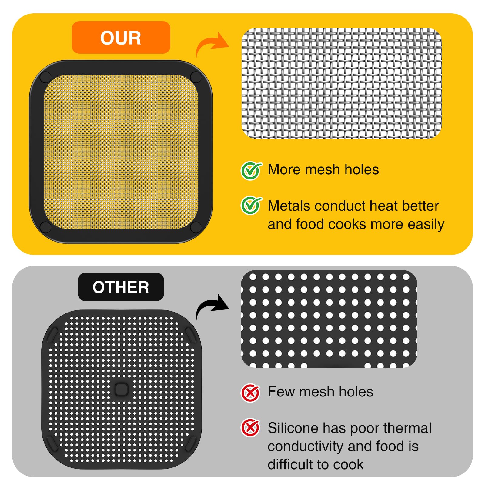La protection anti-éclaboussures ZVVN est conçue pour les friteuses à air chaud Ninja Crispi, modèles FN101EUGY, FN101EUST et FN101EUSG. Cet accessoire est fabriqué en acier inoxydable à mailles fines, offrant une protection efficace contre les éclaboussures de graisse et de nourriture sur la spirale chauffante Évitez le détachement des aimants (les aimants résistants aux hautes températures sont fragiles) Facile à Nettoyer Airfryer Accessoires Pour Ninja CRISPi FN101EU : GEEKHOM En Acier Inoxydable Protection Anti-éclaboussures Magnétique à Mailles Fines Pour Friteuse à Air Chaud Ninja FN101EUGY, FN101EUST Et FN101EUSG Protection Anti-eclaboussures Installation et nettoyage faciles : le filet de protection se fixe facilement et rapidement magnétiquement sur le dessus de la friteuse. Circulation d'air efficace : le filet anti-éclaboussures pour l'accessoire Ninja Crispi garantit une bonne circulation de l'air, ce qui réduit le temps de cuisson par rapport à d'autres plaques anti-éclaboussures en silicone. Si vous avez des questions, n'hésitez pas à nous contacter à tout moment Description du produit Cet écran anti-éclaboussures est un article réussi qui surpasse et surclasse tous les autres écrans sur le marché. La maille extra fine empêche les sauces et les huiles d'éclabousser sur la cuisinière. Les pieds brevetés maintiennent la maille hors du comptoir. Construit en maille d'acier inoxydable de qualité supérieure pour plus de durabilité. La longue... Pour les Ninja Crispy Air Fryer FN101FR, Doublure en Silicone, Filet Anti éclaboussures en Silicone Lot de 2 Piècescompatibles Avec Les Accessoires Ninja Crispi (Beige Contient des aimants - Ne pas laver en machine. Le design circulaire aux quatre coins sert à fixer la position des aimants Lavage à la main recommandé.