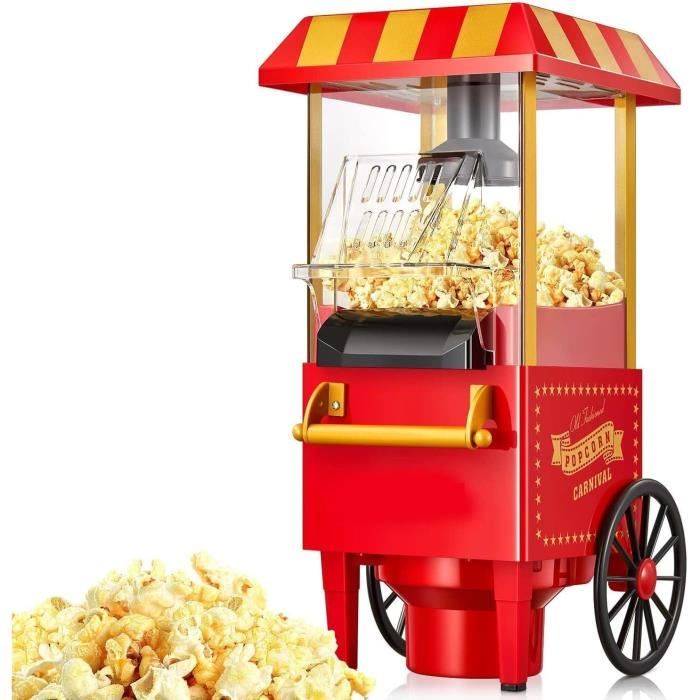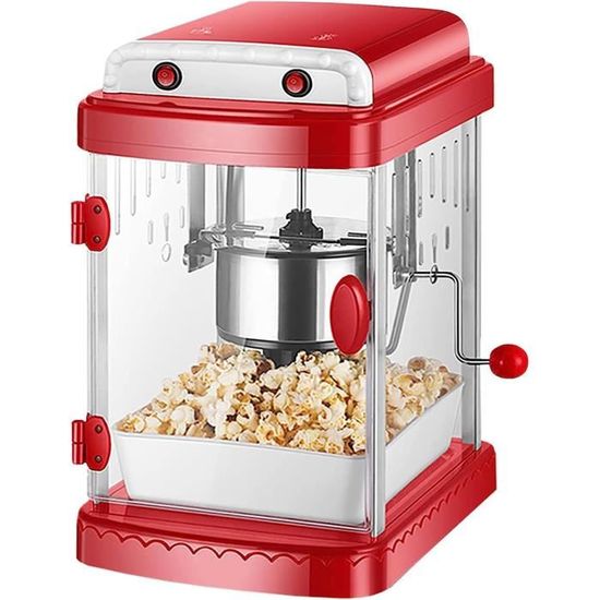 La machine à pop-corn 1200 W est un cadeau idéal pour les amis et la famille. C'est une collation faible en calories et en graisses qui convient également aux personnes âgées, aux enfants et aux personnes qui suivent un régime., 4., Grâce à son design élégant et compact, la machine à pop-corn peut être placée presque n'importe où - dans la cuisine, le salon, le home cinéma, le bureau, le dortoir ou même le camping. La machine à pop-corn rétro est facile à démonter, le couvercle transparent et le couvercle passent au lave-vaisselle, et l'intérieur peut être essuyé avec un chiffon humide. Il suffit de verser les grains de maïs dans la machine à pop-corn rétro, d'appuyer sur le bouton de démarrage et de profiter !, Rapide et délicieux Le pop-corn est non seulement frais, mais aussi exempt de graisse, de sucre et d'additifs. Avec un verre doseur rempli de grains de pop-corn, vous obtenez de délicieux pop-corn chauds en moins de trois minutes. Avec cet appareil, vous pouvez faire du pop-corn rapidement et efficacement Coocheer Machine à popcorn, avec verre doseur et couvercle amovible, 1200 W, noir 1200W Chauffage efficace et uniforme : la machine à pop-corn à air chaud avec verre doseur pour la maison est équipée d'un puissant système de circulation d'air chaud de 1200 W qui chauffe efficacement et uniformément, empêchant ainsi efficacement la combustion ou l'élimination inégale des grains de maïs. Vous pouvez personnaliser le goût et ajouter vos arômes préférés tels que le sucre, le chocolat, le beurre, le sel de mer, l'huile de coco, le fromage, etc. Facile à nettoyer, prêt pour votre prochaine expérience délicieuse de pop-corn Chauffage rapide en 2 minutes : cette machine à pop-corn de 1200 W fait du pop-corn frais et croustillant en seulement 2 minutes. Machine Pop Corn Machine Pour Popcorn Avec Air Chaud + Doseur Et Récipient - Sans Graisse Et Sans Huile - Machine Pop-corn Maison Rétro - 1200W - Vintage Rouge Machine Popcorn Maison Rapide 2 Minutes Chauffage efficace et uniforme : la machine à pop-corn à air chaud avec verre doseur pour la maison est équipée d'un puissant système de circulation d'air chaud de 1200 W qui chauffe efficacement et uniformément, empêchant ainsi efficacement la combustion ou l'élimination inégale des grains de maïs Créez votre collation selon vos envies – saine et délicieuse, comme vous le souhaitez. Dimensions : 26 x 11 x 10 cm. Ajoutez du beurre, du sel ou des épices et laissez libre cours à votre créativité. Détails du produit : Puissance nominale: 1200W Tension nominale : 220 V. Remarques importantes : N'utilisez pas la machine à pop-corn de 1200 W en continu pendant une longue période. Popcorn DIY : cette machine à pop-corn de 1200 W fait du pop-corn sain.