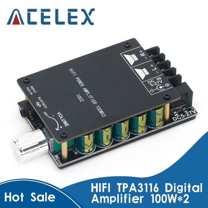 Amplificateur numérique Hi-Fi. Mini-amplificateur numérique Nobsound NS-10G Pro Hi-Fi DSP - 100 W - Avec système bluetooth 5.0 - Audio stéréo à 2 canaux - Pour une utilisation à domicile Entrée audio : RCA stéréo Sortie audio : prises bananes Puissance de sortie max., : 60 W x 2., Réponse en fréquence : 20 Hz-20 KHz (± 1,3 dB)., THD+B : 0,04 %., SNR : ≥ 101 dB. Ses commandes minimalistes, ses fonctionnalités épurées et sa sortie haute fidélité en font un appareil idéal pour les débutants comme pour les audiophiles. Simplicité du plug-and-play : aucune configuration fastidieuse ; il suffit de brancher et de jouer. Une amélioration sonore exceptionnelle pour votre système audio domestique : Que vous souhaitiez moderniser votre système audio de bureau, installer des enceintes d'étagère ou améliorer le son de votre téléviseur, le NS-06G offre un son riche et immersif qui dépasse largement les attentes pour sa taille. Une solution abordable et puissante pour les systèmes hi-fi simples. Profitez de performances stables et d'une puissance impressionnante dans un mini-amplificateur compatible avec la plupart des enceintes d'étagère et de table Impédance des haut-parleurs adaptée : 4-8 Ω Sensibilité de l’entrée RCA : 1 V. AMPLIFICATEUR À TUBE à vide Nobsound Mini 6N6+6N2 HiFi SEPP stéréo Amplificateur Hifi Amplificateur Numérique Tda7498 - Amplificateur Audio 2.0 Classe D Amplificateur Audio Voiture E/S standard pour une connectivité simplifiée : Le NS-06G est doté d'entrées RCA standard et de sorties haut-parleurs bananes pour des connexions faciles et compatibles. Tension d’entrée : 12-24 V CC. Poids du colis : 700 g / 1,54 lb. Dimensions du colis (L x P x H) : 205 x 180 x 55 mm Contenu : 1 amplificateur NS-06G. 1 adaptateur secteur CC 19 V 3,42 A., 1 manuel d’utilisation.