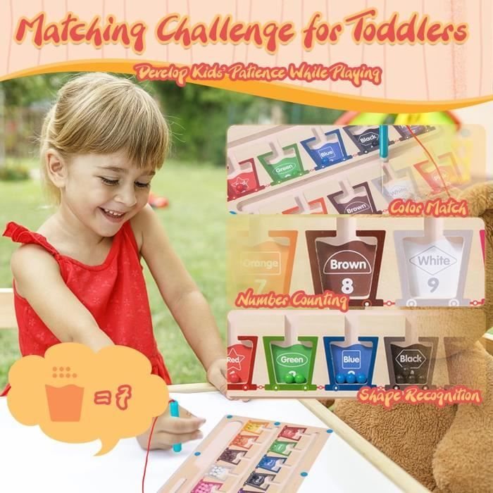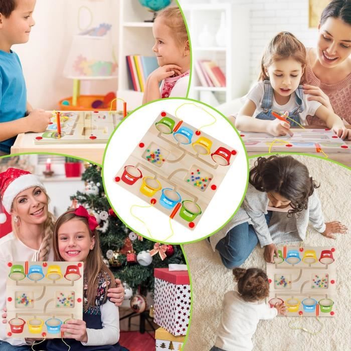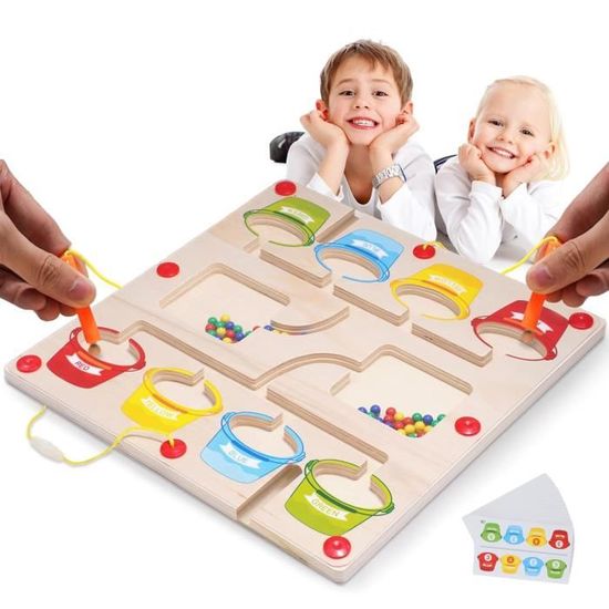 Description du produit Caractéristiques: 1., Lorsqu'ils jouent au plateau de jeu de puzzle magnétique, les enfants doivent tenir des stylos magnétiques et déplacer de petites boules, ce qui les aide à développer inconsciemment la motricité fine de leurs doigts et de leurs poignets., 2., Le stylo à ventouse magnétique peut être facilement fixé au tableau de jouets, le gardant propre à tout moment et empêchant les enfants d'avaler. Lorsqu'ils jouent au plateau de jeu de puzzle magnétique, les enfants doivent tenir des stylos magnétiques et déplacer de petites boules, ce qui les aide à développer inconsciemment la motricité fine de leurs doigts et de leurs poignets Les enfants peuvent s'adonner à leurs jeux joyeux, et les parents et les enfants peuvent passer un moment inoubliable ensemble. Matériaux de qualité : le jouet de tri magnétique des couleurs est fabriqué en bois de tilleul naturel avec une surface lisse, recouvert d'une peinture de sécurité non toxique à base d'eau, 100 % naturelle et saine. Un design coloré et des défis inhabituels attireront l'attention des enfants et les feront jouer tranquillement et attentivement pendant longtemps. Jouet Magnétique 3 Ans Et Plus Amexo Jeux Labyrinthe Magnétique Enfant 2-6 Ans, Jouets Éducatifs En Jeu Apprentissage 3 Ans Il offre aux enfants âgés de 3 ans et plus une manière plus attrayante d'explorer les couleurs et les chiffres. Conception intégrée : la conception intégrée garantit qu'aucune pièce ne sera perdue, évitant efficacement le risque d'avaler des perles par les enfants, adaptée aux petits enfants âgés de 3 ans et plus pour jouer, ce qui le rend pratique et sans souci pour les enfants et les parents. Aide aux parents : ce jouet est léger, de petite taille et facile à transporter, idéal pour les restaurants, les voitures, les avions, etc. Jouet Montessori : utiliser le stylo magnétique pour déplacer les perles et les placer dans chaque seau nécessite que les enfants utilisent leurs muscles et comptent au fur et à mesure que les perles avancent. Amexo Jeux Labyrinthe Magnétique Enfant 2-6 Ans, Jouets Cela exerce la motricité fine et la coordination œil-main, tout en éclairant des concepts importants tels que les nombres, la quantité et les couleurs. Ce labyrinthe magnétique en bois stratifié vernis requiert patience, concentration et motricité fine de la part de votre enfant. En effet, à l'aide d'un petit crayon à la pointe aimantée votre enfant devra faire traverser des billes magnétiques d'un bout à l'autre dans le labyrinthe