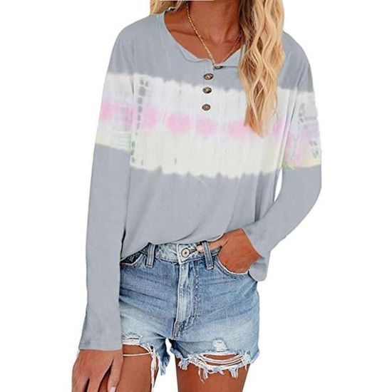 T-shirt D'été Ample Pour Femmes - Orangé - Tie Dye - Manches Courtes