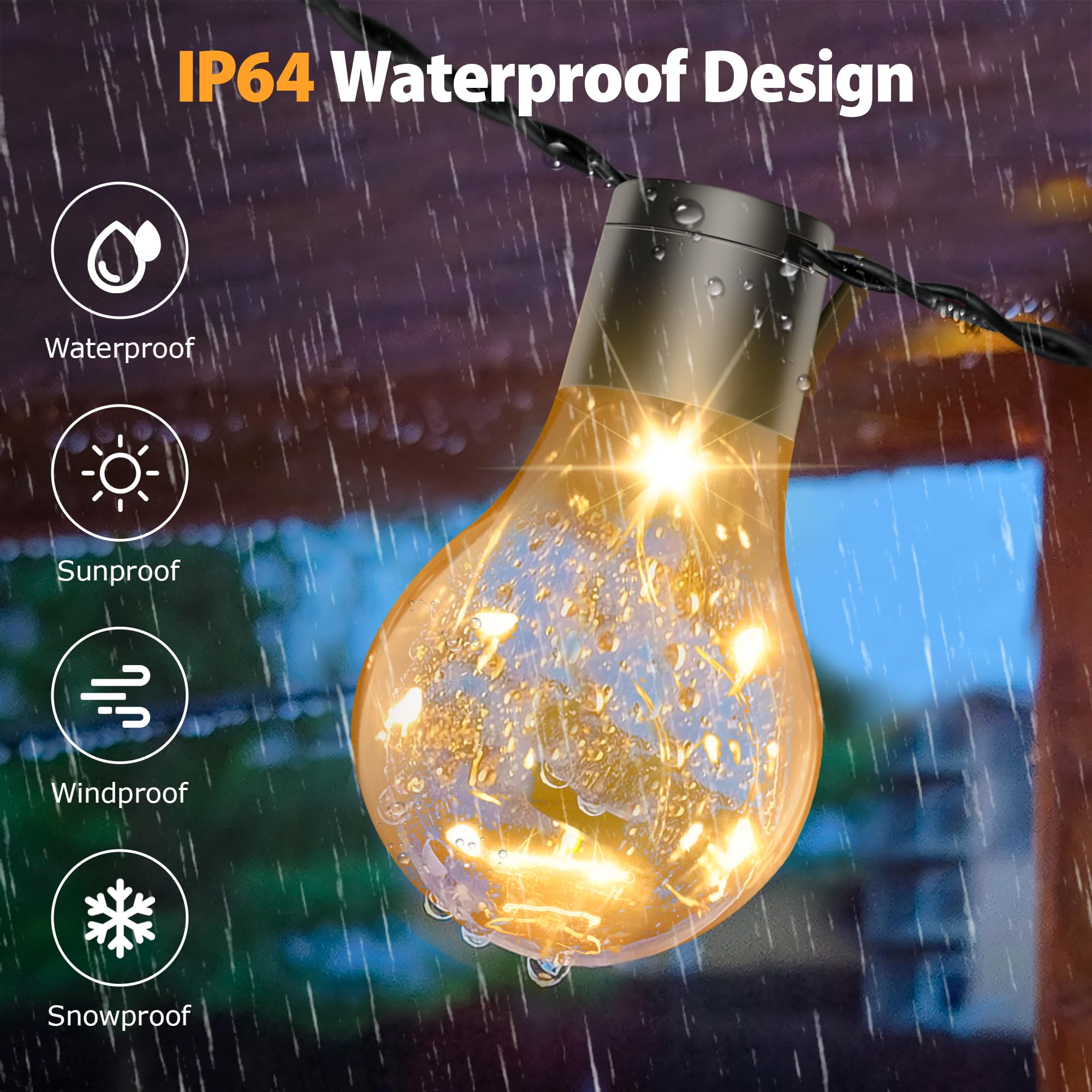 C9 Guirlande lumineuse de Noël d'extérieur à 60 LED avec minuteur, 8 modes d'éclairage, étanche, fonctionne à piles, décoration d'intérieur C9 Guirlande Lumineuse Exterieure Noel DSLebeen Guirlande Lumineuse D'extérieur Avec Batterie Et Minuterie 9 M 12 Ampoules A60 LED Télécommande Guirlande Lumineuse Avec 8 Modes IP64 Guirlande Lumineuse Pour Noël, Fenêtres, Escaliers Guirlande Nombreuses utilisations : la guirlande lumineuse extérieure et intérieure assure une atmosphère lumineuse romantique et est très facile à décorer, idéale pour la décoration de maisons, jardins, terrasses, fêtes, mariages, Noël, festivals, pavillons, clôtures, cages d'escalier, etc 1 manuel d'utilisation (français non garanti) 8 modes et télécommande - Commutez entre les différents modes à l'aide de la télécommande et choisissez entre ①Combination②In wave③séquential④Slo glo⑤Chasing Flash⑥Slow fade⑦Twinkle Flash②Steady on La guirlande lumineuse d'extérieur A60 est résistante aux intempéries et fonctionne même en cas de poussière, de pluie et de projections d'eau sans craindre d'endommager Minuteur et mémoire Avec la fonction minuteur, la guirlande lumineuse peut rester allumée pendant une certaine heure (6 heures allumées, 18 heures éteint) et grâce à la fonction mémoire, ce réglage reste stocké jusqu'à ce que la batterie soit vide Guirlande lumineuse d'extérieur avec minuterie : guirlande lumineuse balcon avec télécommande pour contrôler la guirlande lumineuse de jardin pendant 8 heures et éteinte pendant 16 heures Étanchéité IP64 - La guirlande lumineuse d'extérieur A60 est résistante aux intempéries et fonctionne également en cas de poussière, de pluie et de projections d'eau sans craindre de dommages 3 piles AA La guirlande lumineuse extérieure A60 est alimentée par piles et peut être utilisée aussi bien à l'intérieur qu'à l'extérieur sans câble ni alimentation externe, ce qui évite le risque d'une consommation d'énergie supplémentaire