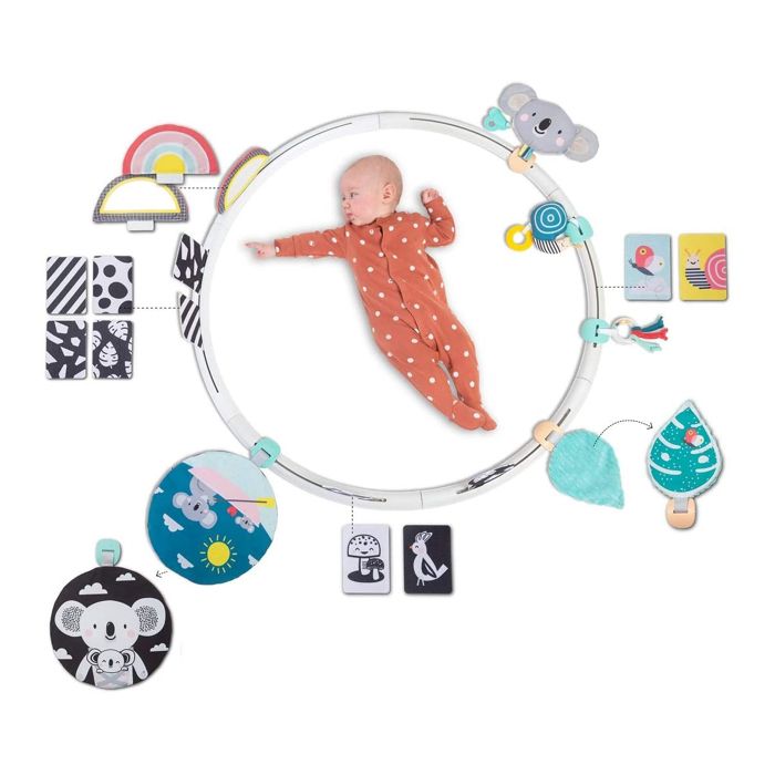 Idéal dès la naissance – Un cadeau parfait pour les premiers mois de bébé, conçu pour favoriser l’éveil en toute sécurité. Samuel Sensory Planche de dévelopement sensoriel et pour bébé Noir blanc Formes géométriques simples à contraste élevé, fabriqué partir carton 700 g/m² naissance la stimulation visuelle le du cerveau Cerceau d'activités évolutives. Contient: un miroir arc-en-ciel , 3 cartes en tissu contrastées, 1 hochet anneau de dentition, 1 hochet de billes et rubans, 1 carte colorée, 1 koala bruissant et 1 feuille texturée Cerceau d’activités évolutif – Un espace de jeu sensoriel de 90 cm pensé pour accompagner bébé dès la naissance dans le développement de sa motricité et de ses sens. L'anneau s'assemble facilement, ce qui permet de le ranger et de le transporter sans difficulté., Dès la naissance. Des images en noir et blanc très contrastées et un miroir sont conçus pour les bébés dès la naissance. Pour les bébés à partir de 3 mois, il y a des images aux couleurs vives et deux carrés de tissu bruissant avec des images et des textures différentes à explorer Favorise le jeu sur le ventre – Livré avec un coussin ventral doux et confortable pour encourager bébé à relever la tête et renforcer ses muscles. L'espace de jeu est délimité par l'anneau de 90 cm, celui-ci permet d'encourager les mouvements de bébés. Tunnel de Jeu Évolutif Bébé – 120 cm avec Cerceau Lumineux Déplaçable, Jouet Ourson, Pliable avec Sac de Transport – Motricité et Exploration – Dès 6 Mois – Fonctionne avec 2 Piles LR03 - Jeux & Jouets