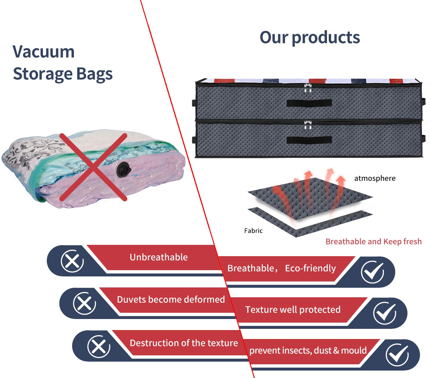 DESIGN SPÉCIAL - À travers la fenêtre transparente supérieure, vous pouvez trouver ce qu’il contient facilement et rapidement. MATÉRIAU DURABLE ET ÉCO-CONVIVIAL - Cet ensemble de 2 sacs à vêtements est fait d'un tissu non tissé épais à 3 couches. OPTION DE STOCKAGE MULTI-USAGE: Ce sac de rangement sous le lit convient parfaitement sous votre lit et peut être empilé au-dessus de l'autre. Idéal pour les couettes, les vêtements, les édredons, les draps, les oreillers, les couvertures, les vêtements, les pulls, etc. Laissons le placard plus propre et rangé COMPLÈTEMENT RESPIRANT et 100% ÉCOLOGIQUE: Ce sac de rangement est fabriqué à partir de tissu non tissé 100% écologique qui permet à l'air de circuler dans le sac, permettant ainsi aux articles stockés de rester frais plus longtemps Ce sac sous-lit a 2 plus grandes fermetures à glissière en métal 5 #, il peut être utilisé plus de 1000 fois (pas comme les autres bon marché qui casseront après seulement quelques utilisations). Sac De Rangement Sous Lit 90L, Lot De 2 Rangement Sous Lit Pliable Closet Organizer Sac Souple Grande Capacite Avec Fenetre Transparente 97624432 La dimension est 100x50x18cm (39., 4x19., 7x7., 1). Marque: homyfort - LE MEILLEUR SERVICE CLIENT - Si, pour une raison quelconque, votre achat ne vous satisfait pas totalement - en cas de rupture, s'il est endommagé lors de l'expédition, ou même si vous changez d'avis - veuillez nous le faire savoir, et nous soit le remplacer ou rembourser votre argent, votre choix! Sac De Rangement Sous Lit Lot De 5, Closet Organizer Sac Souple Grande Capacite Avec Fenetre Transparente Poignees Renforcees Organisateur A Glissiere Non Tisse Pliable100 X 50 X 15 Cm Gris Gris 82606233 Ils sont écologiques, respirants, légers, robustes pour contenir des objets et empilables lorsqu'ils sont remplis d'édredons. homyfort Sac de rangement Sous Lit 2 pièces, Closet Organizer Sac souple, Pliable, 4 Poignées durables, pour vêtements,Couettes,Literie,oreillers,rideaux, 90 litres, 100x50x18cm, Gris clair, 7X3QR100L Gardez votre garde-robe propre et rangée.