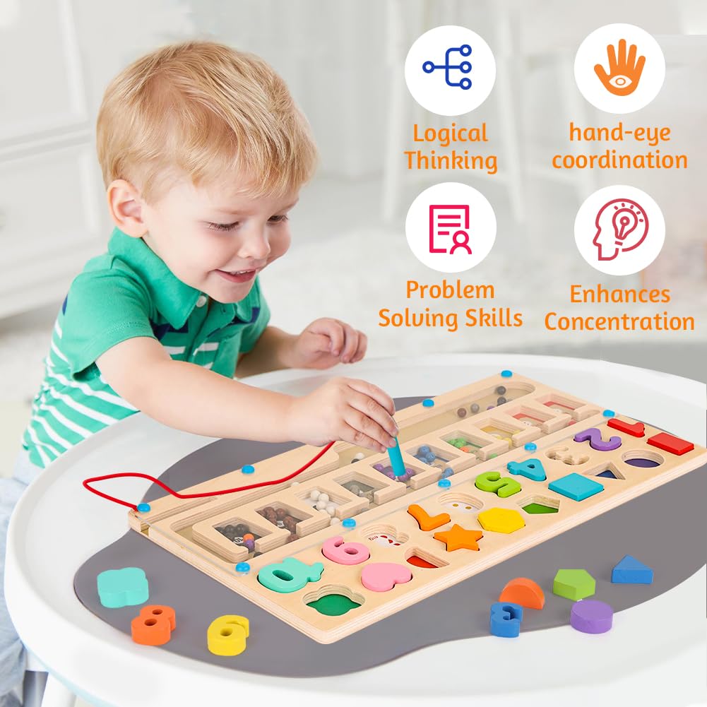 Jeu de labyrinthe en bois : le top 30 des meilleurs de 2023 | Achat Gagnant Apprentissage Couleurs Chiffres Jeu Magnétique Labyrinthe Jeu Labyrinthe Magnétique Enfant KOKOBOX - Jouet Bois Motricité Fine | Grenouille Coccinelle | Cadeau Éducatif 2-6 Ans Jouet Montessori Jouet Bois 3 Ans Labyrinthes magnétiques et jeux de tri couleur Il peut exercer le comptage des enfants, la reconnaissance des couleurs, la coordination œil-main et la motricité fine. Les panneaux en acrylique de haute qualité offrent une durabilité et une stabilité accrues. Faites découvrir à votre enfant le Labyrinthe magnétique Montessori, un jeu de tri en bois, idéal pour développer sa motricité fine tout en s’amusant, conçu spécialement pour les petits de 3 à 5 ans Le tableau magnétique offre également un espace de rangement pour le stylo magnétique, ce qui permet de ne pas le perdre. Découvrez comment le labyrinthe magnétique Montessori stimule la motricité fine chez les enfants, favorisant leur développement cognitif et créatif grâce à des jeux éducatifs engageants Labyrinthe Magnétique de Couleurs et de Chiffres L'utilisation de la béquille pour positionner la planche de comptage à un certain angle tout en jouant aidera votre enfant à développer de bonnes habitudes d'assise. Il permet aux enfants de rester calmes, concentrés et engagés.