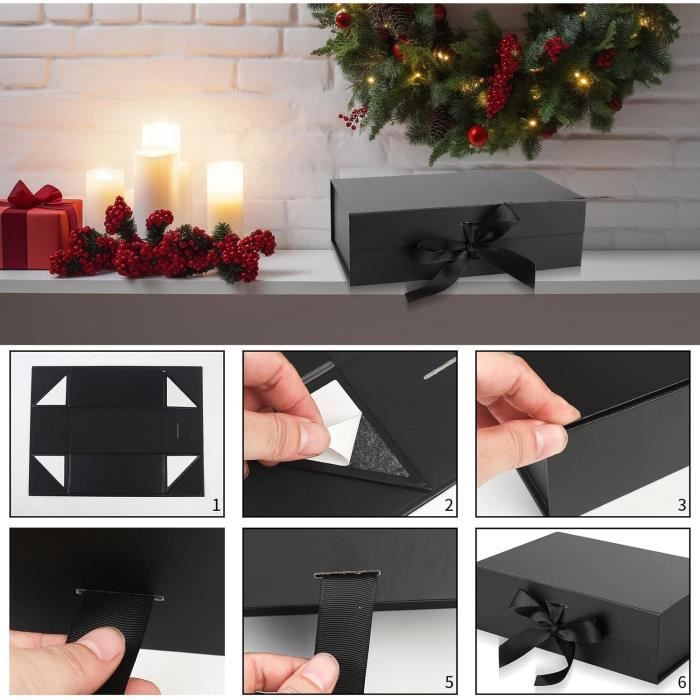 Boîte cadeau avec couvercle, boîte cadeau avec nœud, boîte cadeau, boîte cadeau avec boîte + sac + ruban + lumière, boîte cadeau magnétique avec lumière LED pour mariage, anniversaire, Saint-Valentin Contenu de l'emballage : 1 coffret cadeau., 1 lampe., 1 ruban décoratif., 1 sac. Une boîte cadeau blanche avec couvercle et ruban est une solution d'emballage classique et élégante, conçue pour sublimer la présentation des cadeaux. Ce type de boîte présente un extérieur blanc épuré, un couvercle amovible pour un accès facile au contenu et un ruban décoratif pour une touche de sophistication 1 paquet de papier raphia déchiqueté Fonctionnalités : Dimensions de la boîte cadeau : 21 x 17 x 7 cm. Dimensions de la boîte cadeau : la taille de la boîte cadeau est de 21 x 17 x 7 cm. Large application : nos emballages cadeaux sont parfaits pour les festivals et les emballages quotidiens. Boîte Cadeau Réutilisable Mariage Boîte Cadeau, Boîte Cadeau Avec Couvercle, Boîte Cadeau Avec Ruban Présentation Cadeau Romantique 1 paquet de carton cadeau avec couvercle, 1 carte cadeau, 1 ruban, quelques remplisseurs de papier raphia déchiqueté, 1 guirlande lumineuse LED blanc chaud, vous pouvez écrire des mots de bénédiction sur la carte et emballer la boîte avec du ruban. Elles conviennent aussi bien comme boîtes cadeaux réutilisables que comme boîtes de rangement. Réutilisable et facile à monter : les boîtes cadeaux d'anniversaire sont fabriquées en carton solide de qualité supérieure et enveloppées de papier de qualité supérieure, boîte cadeau durable à utiliser, elles ne se déforment pas facilement, résistantes aux rayures. La boîte cadeau est équipée d'une fermeture magnétique cachée, ce qui permet d'ouvrir et de fermer la boîte sans effort., Instructions de montage : 1., Placez la boîte le long de la partie pliée., 2., Collez du ruban adhésif double face sur les quatre coins de la boîte pour fixer les coins., 3., Couvrez la boîte et attachez le nœud, c'est prêt., Remarques : 1., Pour faciliter le transport et le stockage, la boîte cadeau est livrée à plat., 2., Veuillez vérifier la taille de la boîte cadeau avant l'achat pour vous assurer qu'elle répond à vos besoins., 3., Les mesures étant prises à la main, les tailles indiquées peuvent varier légèrement. Boite Anniversaire Coffret Cadeau Luxe Avec Lumière LED - Boîte Merci de votre compréhension. Apparence mignonne. La boîte cadeau a un couvercle et un ruban, très mignon. Parfait pour contenir des cadeaux. ; Ancrage solide. Le fond de la boîte est fixé...