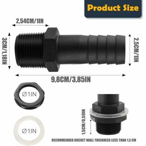 Un raccord pour citerne d'eau de pluie est facile à installer. eau de Pluie. Livraison gratuite. Prix de comparaison. 17,98 €. 9,49 €. Ajouter · ALOVEZ 25mm Trop Plein Cuve 2 Pièces, 1 Pouce Raccord pour citerne d'eau. 1 2 Un trou est nécessaire dans la partie supérieure de la citerne, l'embout est inséré et le filetage interne est vissé à l'aide du contre-écrou, créant ainsi une connexion étanche., 4., Idéal pour une utilisation au jardin et en extérieur. 【Contenu de la livraison 】 2 raccords de tonneau avec 2 rondelles et 4 contre-écrous. Un trou est percé dans le haut du tonneau, l'embout est inséré et le contre-écrou est vissé à l'intérieur, créant ainsi une connexion étanche qui améliore considérablement la prévention des fuites d'eau. Kit Raccord Cheneau Pour Récupérateur D'eau 2 Pièces Trop Plein Cuve 25mm, Passe Paroi Cuve, Raccord | FindTheDeal Joint étanche Réservoir Cet ensemble de buses pour citerne comprend des buses pour citerne d'eau de pluie de 2,5 cm et des buses pour tuyau d'arrosage pour un raccordement facile aux tuyaux d'arrosage. 【Étanchéité élevée 】 Grâce aux rondelles, contre-écrous et ruban d'étanchéité fournis, notre raccord de réservoir assure une excellente étanchéité. 【Installation facile 】 Installation et utilisation faciles. Spécifications : Couleur : Noir Matériau : ABS Taille : Type : 1 pouce Diamètre intérieur aux deux extrémités : 32 mm / 25 mm Contenu de l'emballage : 2 raccords d'entrée pour baril de pluie 2 rondelles 4 écrous de blocage Remarque : 1., Veuillez prévoir un écart de mesure de 1 à 2 mm en raison de la mesure manuelle., 2., En raison des différences entre les écrans, la couleur affichée sur la photo peut être légèrement différente de la couleur réelle. Collecteur filtrant eau de pluie - Récupérez l'eau 【Matériaux de haute qualité 】 PVC haute densité, robuste et durable, facile à remplacer, avec un presse-étoupe de 2,5 cm (1 pouce) pour réservoir d'eau, résistant et durable, résistant au vieillissement et à la fragilisation. Trop Plein Cuve, 4 Pièces Passe Paroi Cuve Eau 1000L, Raccord Tuyau...