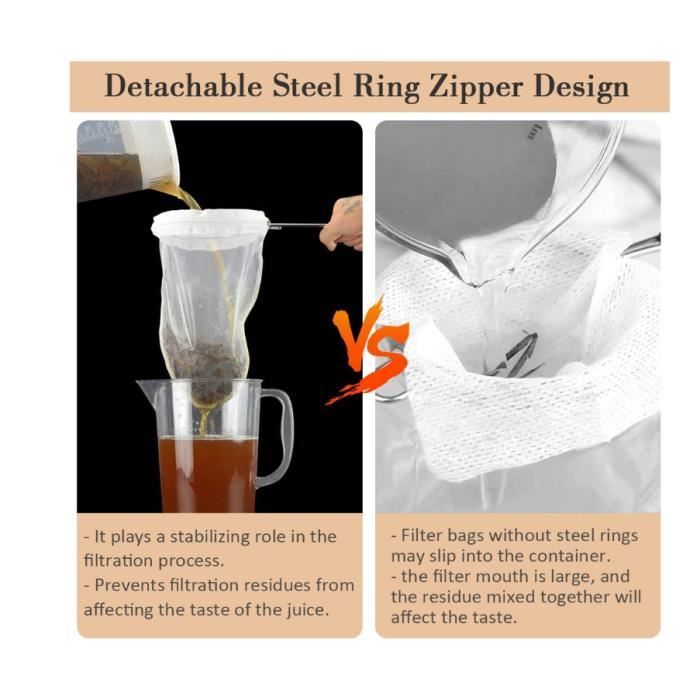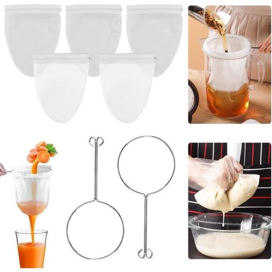 Nettoyez-le mais n'oubliez pas de le remettre dans son état d'origine. Ensemble de filtres de cuisine] 1 support d'anneau en acier portable, 5 sacs filtrants en coton, les sacs de lait de noix peuvent être utilisés dans différentes formes et tailles de récipients, la fermeture éclair empêche les sacs filtrants de glisser et facilite le démontage ➤➤➤Caractéristiques : - La conception spéciale en forme d'entonnoir aide à diriger rapidement le liquide vers la pointe inférieure pour éviter les fuites latérales. 🍵【Largement utilisé】Avec le filtre à sac à lait de noix, vous pouvez facilement filtrer diverses boissons, telles que le lait, le café, le lait de soja, les jus de fruits, le lait de riz, le vin de fruits, etc. 🍵【Facile à nettoyer】 Posez le filtre à mailles fines à plat sur un côté du sol de l'évier, puis soulevez complètement les côtés du sac (haut et bas), retournez le sac et répétez le processus, très facile à nettoyer. Le tissu filtrant est plus fin et plus uniforme, plus durable et ne se déforme pas facilement. 🥛 【Ensemble de filtres de cuisine】 1 support d'anneau en acier portable, 5 sacs filtrants en coton, les sacs de lait de noix peuvent être utilisés dans différentes formes et tailles de récipients, la fermeture éclair empêche les sacs filtrants de glisser et facilite le démontage. 1/6. 0. Sac filtrant pour lait et noix, 5 pièces, passoire pour aliments soja, pochette pour jus de uits, gaze méticuleuse. 14,79€. -55% 33,52€. Engagement de... - Les doubles coutures renforcées rendent le sac d'infusion réutilisable, infusable et lavable. Sac Nylon Sac A Lait Vegetal,Sac Filtrant,Filtre Lait Vegetal,Sac Kit Filtration Maison Jus Café Yaourt Sac à Lait De Noix 5 Pièces Sac A Lait Vegetal Avec 1 Support Filtre Cuisine Pour Jus 🍵 【Filtre robuste et durable】 Le sac filtrant pour sac à lait de noix est fabriqué en tissu de qualité alimentaire, la poignée du cadre de la passoire est en acier inoxydable, sans odeur, facile et sûre à utiliser. - Le fond arrondi empêche le colmatage pour une filtration plus claire et plus rapide. - Convient pour le lait de noix, le lait de soja, le thé, le café, le vin, les jus de légumes et divers produits laitiers. Comparé aux fonds carrés ordinaires, il s'adapte mieux à la forme du récipient, moins de fuites, propre et facile à utiliser. - Ne le laissez pas sécher, sinon il sera difficile à nettoyer.