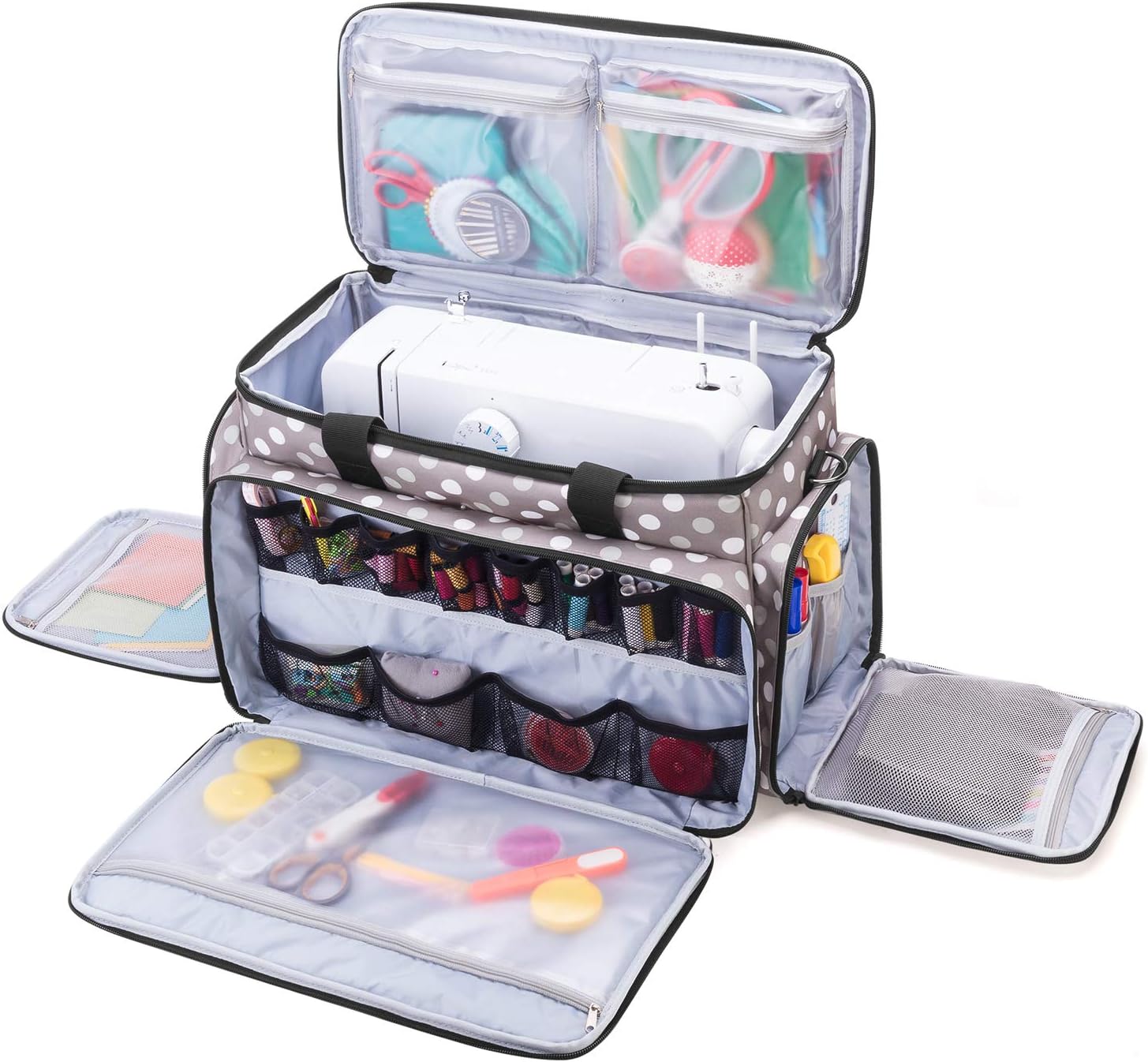 Le manche télescopique peut être rallongé jusqu'à 93 cm (hauteur de la base incluse). Dimensions : Dimensions extérieures : 43,2 x 24,1 x 30,5 cm. Dimensions intérieures : 29,2 x 29,2 x 10,2 cm Convient pour Singer, Brother et la plupart des machines à coudre de taille standard. Pour la machine à coudre d'autres modèles et marques, veuillez vous référer à la taille de ce sac pour machine à coudre MATÉRIEL Fabriqué en polyester robuste avec rembourrage épais., Sac uniquement. DIMENSIONS: 41cm x 20cm x 33cm (taille du sac). Il dispose également de 2 poches avant séparées et de 2 poches latérales zippées pour un rangement optimal de vos articles de couture ou personnels. Il comprend un fond rembourré amovible pour réduire les chocs et éviter les chocs (sac uniquement). Des sangles à boucle sur le dessus maintiennent le couvercle ouvert, facilitant ainsi la récupération des articles. PORTABLE: attaché avec des poignées robustes, une bandoulière antidérapante amovible et un chariot de chariot amovible. (Remarque: cette sac de transport machine a coudre peut se tenir debout après avoir sorti la machine) DIMENSIONS: 34,5 CM x 28 CM x 34,5 CM (Extérieur). 30,5 CM x 27 CM x 32 CM (Intérieur CONCEPTION Une conception largement ouverte pour un accès facile. Luxja Sac de achine à Coudre avec Chariot Détachable, Sac achine à étui Machine à Coudre Transport 44x19x31cm Dimensions Sac Rangement Machine à Coudre Luxja - Nylon Rembourré - 44x19x31cm - Poches Multiples - Bandoulière Poches Organisatrices Machine Sac Machine A Coudre EXCELLENTE QUALITÉ: Ce sac est fabriqué en polyester robuste avec un rembourrage épais pour protéger votre machine à coudre. Des sangles à boucle sur le dessus maintiennent le couvercle ouvert, facilitant ainsi la récupération des objets. Le grand compartiment avant zippé comprend 6 poches en filet et 1 poche zippée. 2 poches avant séparées et 2 poches latérales zippées pour un rangement suffisant des articles de couture ou personnels. PORTABLE Doté de poignées supérieures et latérales robustes, d'une bandoulière antidérapante amovible et d'un chariot amovible pour un transport facile.