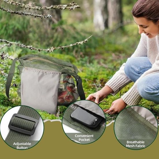 Matériaux recommandés: Sac à champignons en matériau réseau durable et polyester hydrofuge. Description : Ce Sac De Ramassage De Grande Capacité Est Conçu Pour Les Amateurs De Plein Air Qui Aiment Chercher Des Champignons Et D'autres Fruits Le réseau filtre la saleté et les parasites indésirables en marchant et propage en même temps les spores tout en marchant dans la forêtSTOCHONS RÉGLABLES: Il dispose d'une sangle réglable épaisse et très facile que vous pouvez adapter pour l'utiliser comme sac à main ou à la main afin que nous ayons les mains libres à choisir. Le bas du sac de collection de champignons est en polyester de haute qualité pour protéger les morilles de l'écrasement lorsque le sac est plein Compagnon polyvalent en plein air : Ce sac de récolte est non seulement idéal pour les cueilleurs de champignons, mais aussi pour la cueillette de baies, d'herbes aromatiques, ou comme compagnon pratique pour les séjours camping en pleine nature équipement Forestier Cueilleur Moonoom Lot De 2 Sacs De Chasse Aux Champignons, Pochette En Maille Poche Filet Aérée Camping Le bas du sac de collection de champignons est en polyester de haute qualité pour protéger les morilles de l'écrasement lorsque le sac est pleinConception de réseau respirante pour les champignons frais: La poche de collection de champignons en matériau en maille ventilé permet une circulation d'air optimale. Conception de réseau respirante pour les champignons frais: La poche de collection de champignons en matériau en maille ventilé permet une circulation d'air optimale. Compartiments supplémentaires pratiques pour l'équipement: les poches latérales intégrées offrent un espace pour les couteaux de champignons, les livres de stimulation ou les objets personnels. Les collectionneurs ont donc tous les ustensiles à portée de main sans avoir à transporter des sacs séparésCompagnon polyvalent en plein air : Ce sac de récolte est non seulement idéal pour les cueilleurs de champignons, mais aussi pour la cueillette de baies, d'herbes aromatiques, ou comme compagnon pratique pour les séjours camping en pleine nature Lot de 2 sacs de cueillette de champignons avec pochette de taille et STOCHONS RÉGLABLES: Il dispose d'une sangle réglable épaisse et très facile que vous pouvez adapter pour l'utiliser comme sac à main ou à la main afin que nous ayons les mains libres à choisir. Lot de 2 sacs de cueillette de champignons avec pochette de taille et sac en maille, fermeture en cuir, sangle réglable pour la récolte de fruits ou la chasse aux champignons