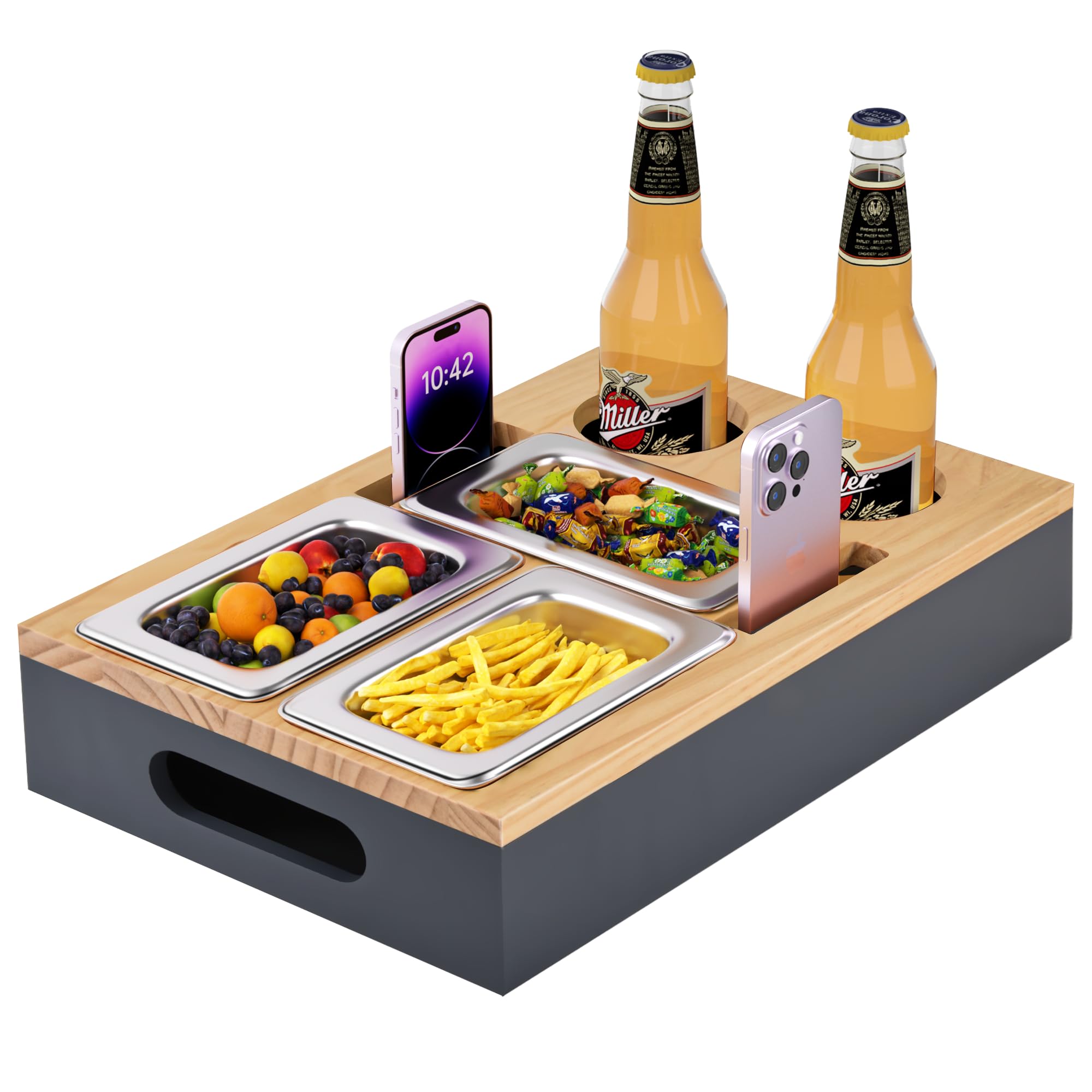 Tout vous donnera l'impression d'être toujours à portée de main Les deux bols à collation en acier inoxydable sont parfaits pour contenir des noix, des frites ou d'autres petits objets. Matériau durable: Fabriqué à partir de bois écologique, notre boîte à collations est un excellent choix pour ceux qui privilégient la durabilité Le plateau du canapé peut parfaitement stocker différents types de collations et 2 boissons et dispose de 2 porte-gobelets au design unique avec emplacements pour cartes pour un placement plus sûr des aliments. 【Conception multifonctionnelle】 Le porte-gobelet du canapé contient 2 porte-gobelets et 6 bols à collation en acier inoxydable, et présente également une conception de position unique pour placer votre téléphone portable, votre télécommande, etc. léger, vous pouvez donc l'utiliser facilement et l'emporter partout qui peut mettre les articles dont vous avez besoin au même endroit, pour que votre vie soit plus facile. Ou comme compagnon décontracté et décoration pour les meubles de salle à manger, les tables basses ou les casiers à vin. Plateau de canapé avec bols à collation en acier inoxydable Sprifityy Couchbar Boîte à Snack Plateau de Canapé avec Bols à Snack en Acier Inoxydable avec Couvercle Amovible Boîte à Snack avec Compartiments Plateau de Canapé Étagère de Canapé pour Salon Chambre Jardin Camping Le plateau de canapé est parfait pour les fêtes, les cadeaux de Noël, les matchs de football, les fêtes d'anniversaire et autres occasions. Poids : 1200g Couleur: couleur bois Matériau : bois. Solution de stockage intelligente] Ce canapé snack comprend un plateau snack, un porte-gobelet, un support télécommande et un support téléphone portable ainsi que des cloisons amovibles, ce qui en fait la combinaison parfaite entre confort et praticité Plateau Repas Dazhtu Plateau Canape, Canapé Bar Snack Box, Canapé Avec Bols à Collation En Acier Inoxydable, Couvercle Amovible, L'organisateur De Canapé Parfait Pour Le Salon, Le Canapé,la Fête Table Pour Lit Informations sur le produit : Nom : boîte à collations.