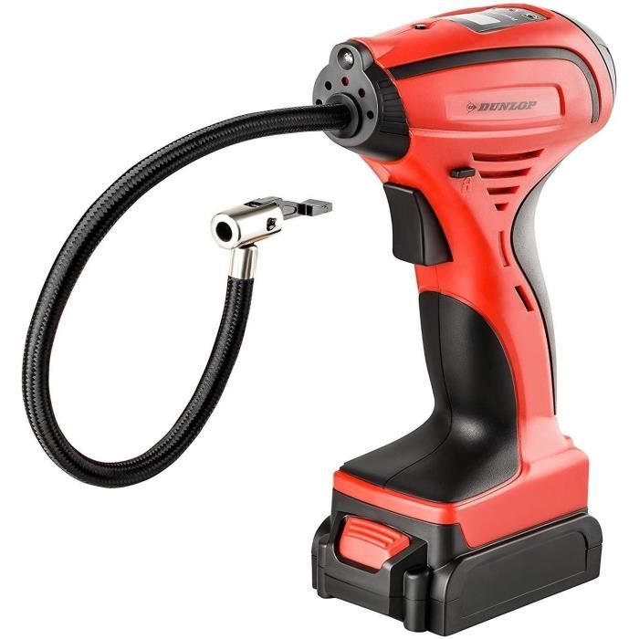 Dunlop Autootive 10214 Kabelloser ini Kopressor 12 V Akku, 50 HZ Écran d’affichage numérique : Sur l'écran numérique éclairé, vous pouvez présélectionner la pression d'air désirée, l'appareil s'arrête automatiquement quand cette pression est atteinte. Compresseur Voiture Mini Compresseur Sans Fil 7 Bar 20V + Batterie Lithium 2Ah Chargeur + 6 Mini Compresseur Camping Portable Parfait en toute occasion : Ce compresseur muni d’une batterie puissante de la maison Dunlop ne saurait manquer dans la voiture, ou au camping ou dans le garage chez soi. 5 embouts différents fournis : Dans le compresseur, sous un rabat, sont rangées deux buses supplémentaires pour le gonflage des ballons de foot et des matelas. En outre, tous les adaptateurs munis d’un filetage M6 peuvent être fixés., included_components: Retail Le compresseur fonctionne sur une batterie intégrée, mais peut également être utilisé via la prise 12V qui peut être connectée à la prise 12V de votre voiture Dunlop Mini-Akku-Kompressor 10214 | Mini-Kompressor für zuhause und für De nuit, la lampe LED commutable ne vous laisse pas dans l’obscurité. Alimentation 12 V/230 V : Si la batterie est déjà morte, l'allume-cigare vous aidera en cas de besoin. Regonflez les pneus de voiture et de vélo à plat, les bouées de vos enfants, le matelas gonflable ou le ballon de foot.