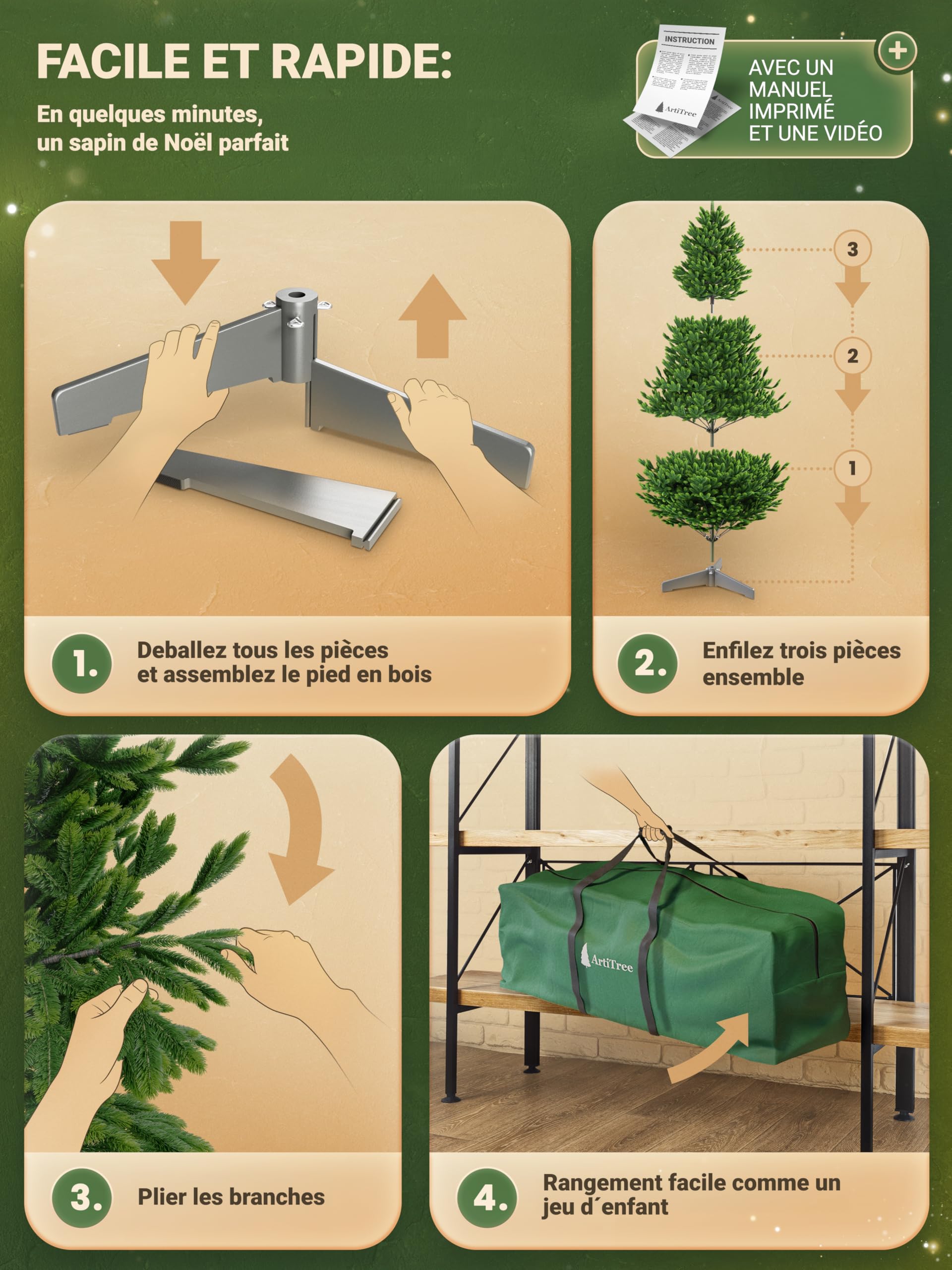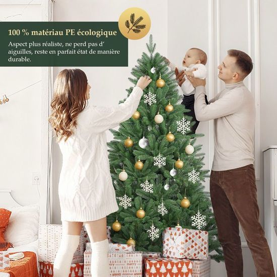 Une notice multilingue ainsi qu’une vidéo détaillée rendent l’installation encore plus simple. Il suffit ensuite de déployer et de positionner les rameaux pour que le sapin artificiel réaliste prenne immédiatement sa forme parfaite et soit prêt à être décoré en quelques minutes. Sapin de Noël artificiel, épicéa naturel, 150 cm Sapin de Noël Artificiel 180 CM COSTWAY - Ouverture Automatique des Branches - Support en Métal - 928 Branches - Décoration de Fête · VANKEL Sapin de Noël... 🎄 Sapin de Noël artificiel premium – apparence réaliste d’épicéa Ses aiguilles finement travaillées en forme classique d’épicéa offrent un rendu particulièrement naturel. Sapin de Noël Artificiel - Tronc en Bois B - Bogota PE / PVC Premium Aucun PVC apparent sur le tronc, aucune zone clairsemée, aucune perte d’aiguilles – seulement la joie d’un Noël durable. Le sapin de Noël artificiel Épicéa du Nord est l’alternative parfaite au sapin naturel et séduit par sa longévité, sa durabilité et son réalisme impressionnant. Sapin Noël Artificiel 180 Cm Sapin Artificiel Nordmann Slim 180 Cm Avec PE | FT05 Décoration Noël Premium 🧰 Montage facile & rangement pratique Le sapin artificiel 180 cm se monte en un clin d’œil grâce au système d’emboîtement et au mécanisme parapluie. Ses aiguilles plus courtes rappellent l’apparence authentique d’un épicéa fraîchement coupé – mais sans perte d’aiguilles. 🌲 Sapin artificiel avec système parapluie pratique Grâce au mécanisme parapluie, les branches s’abaissent automatiquement lors du montage.