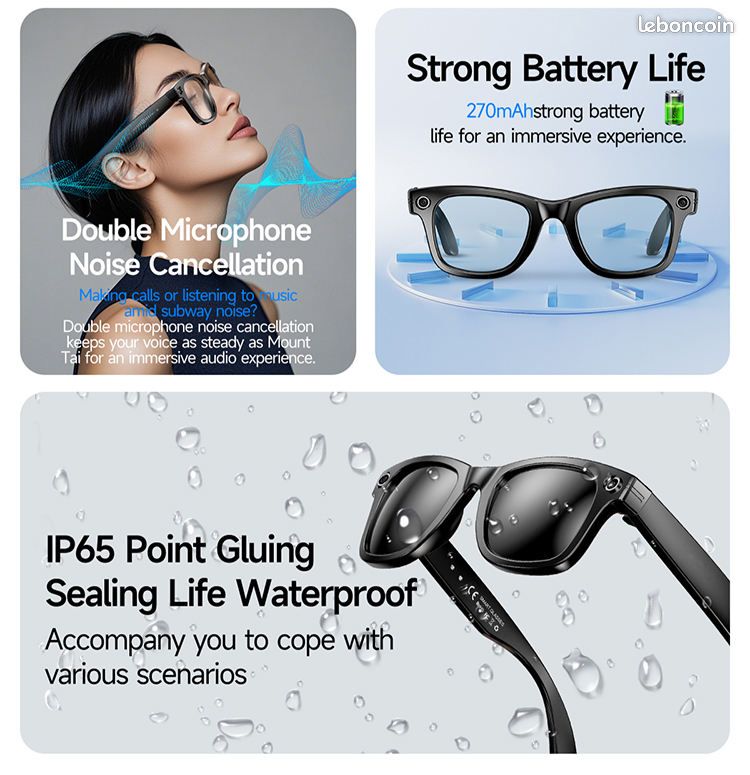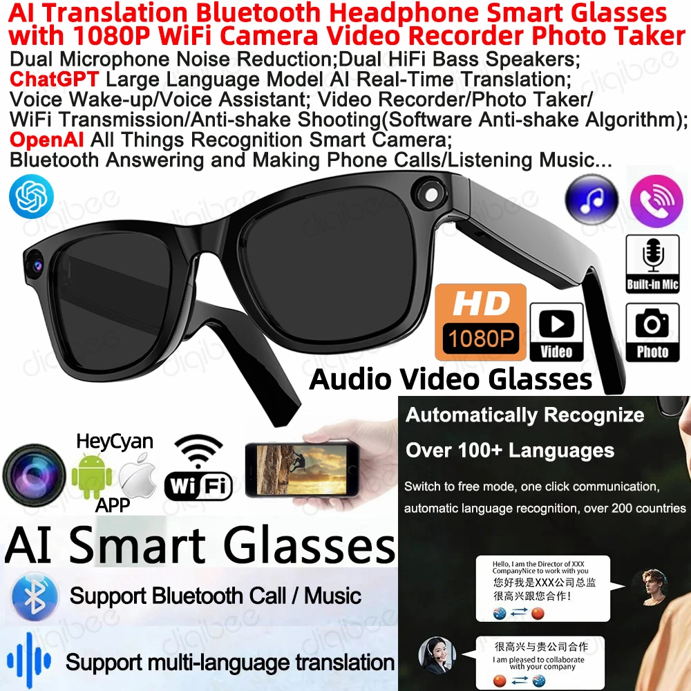 Multi fonctionnel: équipé d'une caméra 20MP, les lunettes intelligentes élégantes présentent des écouteurs Bluetooth, le WiFi, l'enregistrement photo et vidéo 1080p, et diverses fonctions d'IA telles que la traduction vocale et la traduction en temps réel, vous permettant de prendre des photos, d'enregistrer des vidéos et de profiter des appels. Ai Translation Glasses 32GB Camera Glasses With 1080P Video - WiFi/Bluetooth Smart Glasses With AI Translation For Sports & Travel 1080P Video Recording Smart Glasses Ces lunettes intelligentes intègrent une caméra Bluetooth, vous permettant d'enregistrer des vidéos à couper le souffle et d'immortaliser chaque instant avec une netteté exceptionnelle Expérience musicale améliorée: Immergez-vous dans de la musique de haute qualité à tout moment, n'importe où avec les lunettes de musique intelligentes activées Bluetooth 5., 4., Avec des haut-parleurs ouverts de haute performance avec deux trous sonores sur chaque jambe pour une expérience d'écoute riche et immersive. Avec le dialogue AI, l'enregistrement en direct, l'interprétation simultanée et les capacités de traduction en face à face, vous pouvez naviguer en toute confiance dans n'importe quelle situation. Traduction avancée de l'IA: ces lunettes prennent en charge la traduction automatique en plusieurs langues, assurants une conversation transparente lors des négociations commerciales ou des voyages internationaux Pesant seulement 42 g, ils conviennent aux hommes et aux femmes. Enregistrement vidéo HD 1080p: capturer vos aventures dans des détails incroyables avec la caméra haute définition 20MP intégrée, idéale pour des activités telles que le vélo, la randonnée, la pêche, les voyages, les réunions, les affaires ou les déplacements quotidiens sans soulever un doigt. Traduction En Temps Réel Lunettes Lunettes Intelligentes De Traduction IA Bluetooth Pour Hommes Smart Glasses Caméra 20mp
