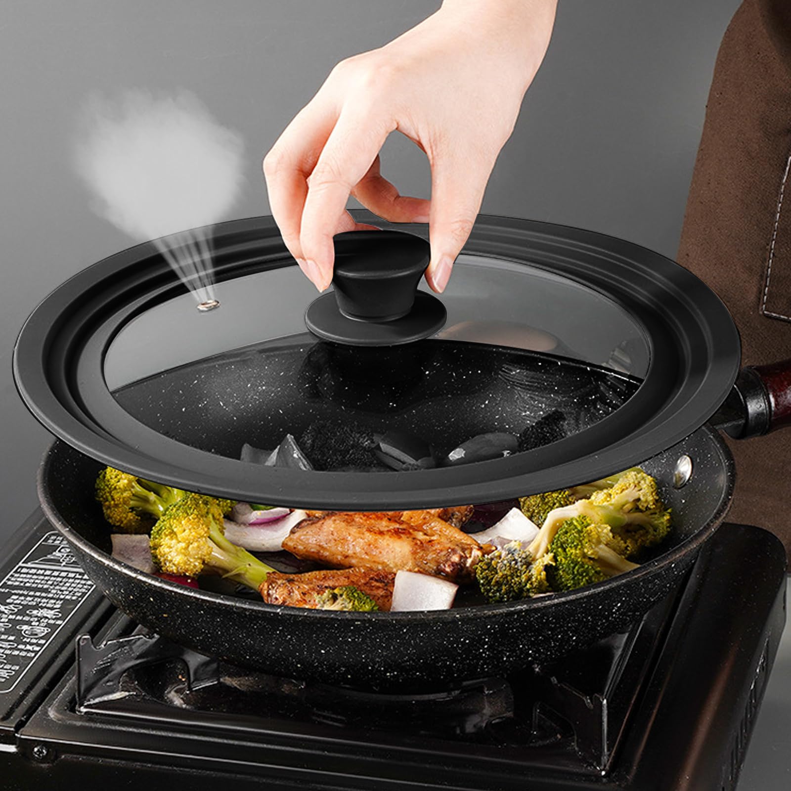 Que ce soit pour une poêle à frire, un wok ou une marmite, ce couvercle polyvalent (Universel Couvercle Poêle) épouse toutes les formes et répond à vos divers besoins culinaires Ce couvercle est un vrai couteau suisse pour ta cuisine ! Il s'adapte sur presque toutes tes casseroles et poêles de 21 à 31 cm (oui, même les woks Couvercle universel en verre - Pratique & polyvalent Description du produit : Obtenez un couvercle universel de haute qualité en verre trempé avec bord en silicone qui s'adapte parfaitement aux casseroles et poêles (18-22 cm) - idéal pour une cuisson rapide et douce sans éclaboussures. 【Polyvalence Redéfinie】 : Véritable incontournable, ce Couvercle Universel limite les déperditions de chaleur pour des plats mijotés uniformément. 【Nettoyage Simplifié】 : Ce Couvercle en Verre se nettoie en un clin d'œil : lavage à l'eau tiède, au savon, ou directement au lave-vaisselle. 【Transparence & Contrôle Visuel】 : La partie centrale en verre transparent permet de surveiller la cuisson sans soulever le couvercle. Le manche « cold-touch » anti-dérapant évite les accidents, tandis que les évents de vapeur régulent l'humidité et la pression pour une expérience de cuisson plus sûre. CGEADY 2 Pièces Couvercle Universel en Silicone Poeau... Caractéristiques : Utilisation universelle - le bord en silicone à trois couches s'adapte aux poêles à frire, woks et casseroles à soupe (18/20/22 cm). Acheter Couvercle universel en verre et silicone de Beka - 3 tailles Couvercle Casserole ZMDMAH Couvercle En Verre, 3 Tailles Noir Couvercle Universel Avec Bord Gradués En Silicone Résistant à Chaleur Et Trou Vapeur, Couvercle Universel En Verre Pour Poêles Et Casseroles De 18 20 22 Verre Trempé Résistant Chaleur Le manche ergonomique en silicone anti-brûlure assure une prise sécurisée, même pour un couvercle poêle 28 cm Résistant au lave-vaisselle - Facile à nettoyer, conserve sa qualité même après un usage fréquent. Économie d'énergie - Réduit la perte de chaleur, raccourcit les temps de cuisson et économise l'électricité. Si tu as des questions avant ou après l'achat, contacte-nous - notre support francophone te répondra dans les 24 heures. 【Design Universel】 : Grâce à sa bordure en silicone triple couche, ce Couvercle Universel en Verre s'adapte parfaitement aux casseroles de 18 cm, 20 cm et 22 cm.