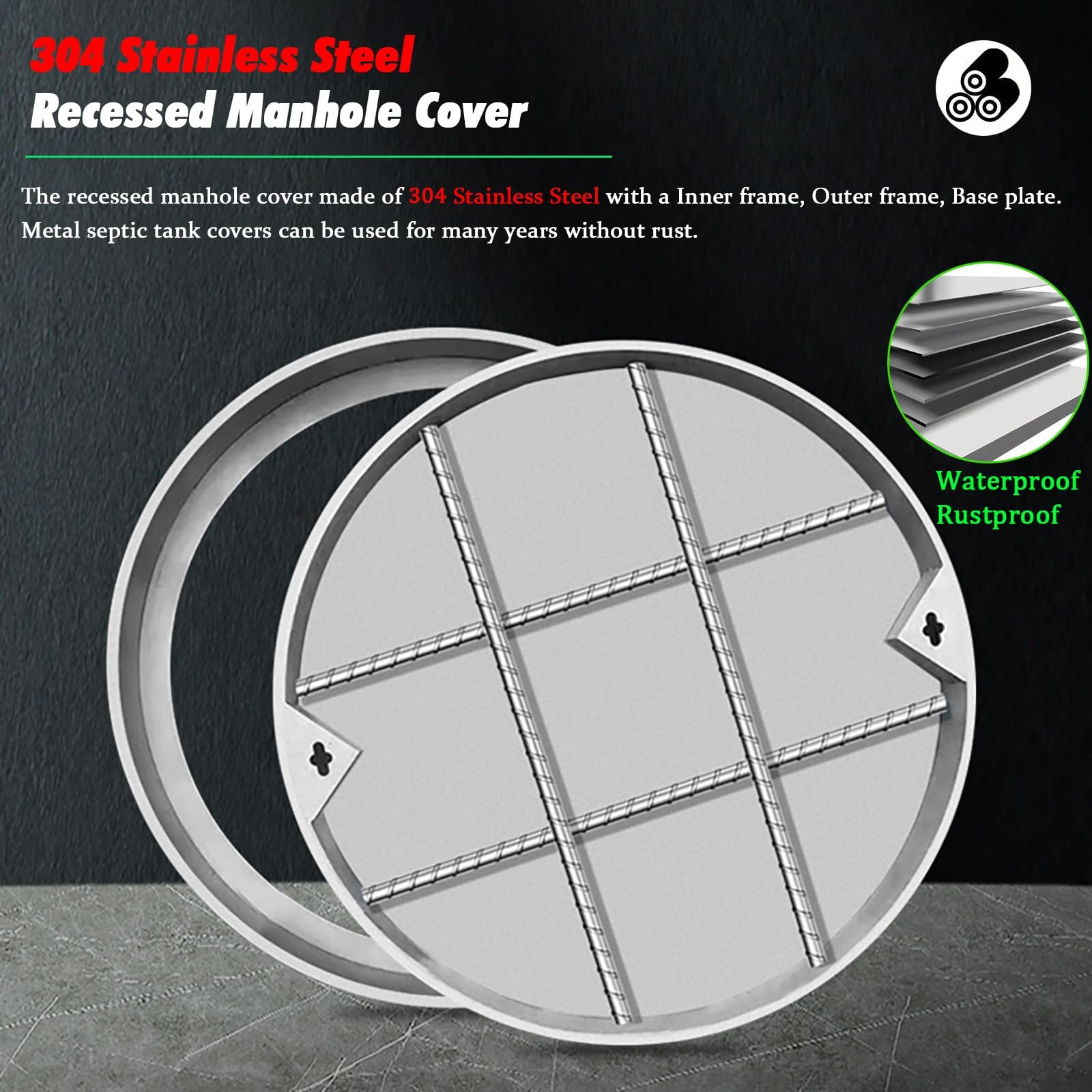 Ce couvercle de regard peut résister à une pression plus élevée et n'est pas facilement endommagé, garantissant votre sécurité et la durabilité du couvercle. VEVOR Couvercle de Regard en Acier Galvanisé 30x30 cm, Plaque d'Égout Vnook Couvercle de Regard Invisible et Cadre en Acier Inoxydable, Couvercle d'égout encastré, Couvercle d'inspection carré for Cour, Couvercle de Bassin d'égout (500x500x50cm Selon l'environnement, le couvercle de regard invisible peut être pavé de différents matériaux, parfaitement relié au sol environnant et ainsi servir à dissimuler Trou de traction portable : notre couvercle de fosse septique est équipé d'un trou de traction afin qu'une personne puisse facilement soulever le couvercle. Le kit de couvercle d'inspection est équipé d'une plaque d'acier épaissi, d'un cadre carré rigide et de quatre vis pour l'étanchéité et le verrouillage. Il laisse un trou central pour la ventilation Capacité améliorée : L'arrière du couvercle de regard extérieur est renforcé for offrir une plus grande capacité. Matériaux : Le couvercle intérieur et le cadre extérieur du couvercle de regard sont fabriqués en acier inoxydable 304, qui peut être utilisé pendant une longue période dans divers environnements difficiles, ne rouille pas facilement et a une longue durée de vie. Couvercle De Regard 40x40 Couvercle Et Cadre De Regard Invisibles En Acier Inoxydable, Couvercle De Bassin D'égout Encastré Carré Extérieur De 30, 34, 36, 38, 40 Pouces, Couvercles De Fosse Septique Robustes, Décoration For Al Couvercle D'égout Encastré Pour Cour Pavée
