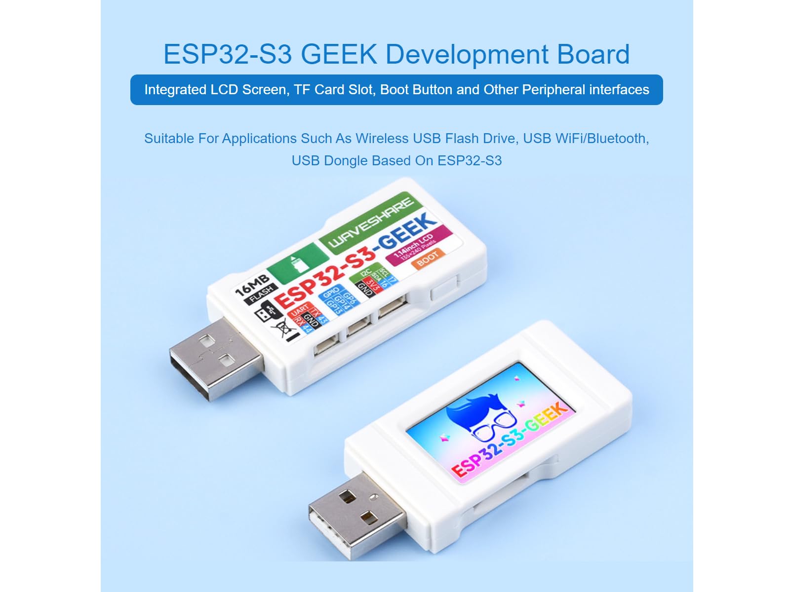 Waveshare ESP32-GEEK Development Board, Based on ESP32-S3R2 Controller Chip, with 1.14inch 65K Color LCD, Supports WiFi & Bluetooth Le, USB-A Male Port, with White Plastic Case Built in 512KB SRAM, 384KB ROM, 2MB of on-chip PSRAM, and onboard 16MB Flash memory., Onboard 1., 14inch 240×135 pixels 65K color IPS LCD display , Integrated 2., 4GHz WiFi and Bluetooth LE wireless communication. Arduino Pro Mini Waveshare ESP32-GEEK Development Board, Based On ESP32-S3R2 Controller Chip, With 1.14inch 65K Color LCD, Supports WiFi & Bluetooth LE, USB-A Male Port, With White Plastic Case Esp32 Wrover Board Specifications ESP32-S3-GEEK is a geek development board designed by Waveshare, onboard USB-A port, 1., 14inch LCD screen, TF card slot, and other peripherals., Supports 2., 4GHz WiFi and BLE 5, with integrated 16MB Flash & 2MB PSRAM, provides I2C port, UART port, and GPIO header, bringing more possibilities for your project. Equipped with plastic case and cables Provides online open-source demo and resources, more convenient for learning and development Supports 2.4GHz WiFi and BLE 5, with integrated 16MB Flash & 2MB PSRAM, provides I2C port, UART port, and GPIO header, bringing more possibilities for your project. Waveshare ESP32-GEEK Development Board, Based on ESP32-S3R2... LCD Development Board Waveshare ESP32-GEEK Development Board With 1.14 LCD - Wi-Fi & Bluetooth LE Compatible LCD Microcontroller Board Adopts ESP32-S3R2 chip with Xtensa 32-bit LX7 dual-core processor, capable of running at 240 MHz WiFi supports 1T1R mode with data rate up to 150 Mbps. com/wiki/ESP32-S3-GEEK?Amazon Package Content ESP32-S3-GEEK and cables x1