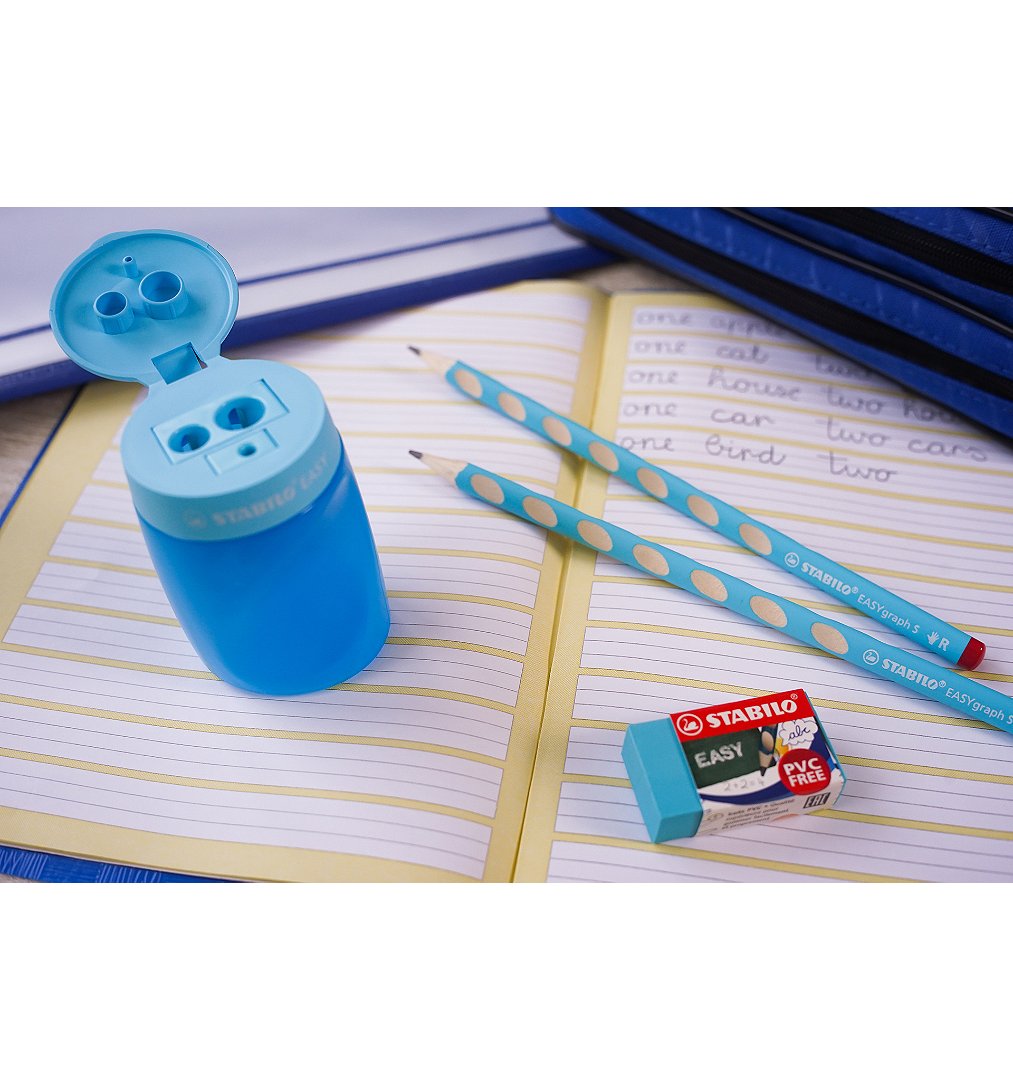 Polyvalent, le taille-crayon ergonomique STABILO EASYsharpener s'adapte à trois diamètres de mines différentes. Au delà de son côté pratique, STABILO EASYsharpener bénéficie d'un design inédit en version droitier et gaucher Couleur du taille-crayon : rose, conteneurs d'exécution : récipient rond pour gaucher avec poignée innovante pour une manipulation optimale. Taille Crayon Stabilo Taille Crayon Reservoir Taille-crayon STABILO EASYsharpener - Ergonomique Droitier - 3 Trous - Avec Réservoir Stabilo Surligneurs Taille-crayon Avec Réservoir Taille-crayon ergonomique Stabilo. Spitzer dispose de 3 ports différents, un pour les mines et 2 pour Easy Colours Easy Grap., EASYergo 3., 15 et tous les crayons en bois ordinaires. Idéal pour les crayons en bois Stabilo Easy Colors, Easy Graph, Easy Ergo 3., 15 et tous les crayons en bois fins , Produits_de bureau STABILO EASYgraph droitier Crayon 2B rose ergonoique pour Lot de 12... Stabilo Ergonomik kutu kalemtıraş, sağ elini kullananlar için, EASYsharpener, 3ü Il offre une forme pointue. Avec couvercle verrouillable et carte nominative, matériau de la coque : PP, doses, partie inférieure : PE, rose translucide, obturateur perforé disponible. Utilisation pour diamètre de broche : Ø 3,15 mm (mines), Ø 7,42 mm (crayons de couleur fins), Ø 9,5 mm.