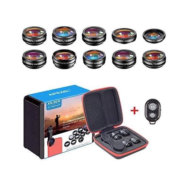 Le kit de lentille de téléphone peut s'adapter à la plupart des types et modèles de smartphones, non seulement un objectif de téléphone photo unique mais également à double objectif d'appareil photo, y compris iPhone X/XR/XS, 8, 8 Plus, 7, 6S, 6 Plus, Samsung Galaxy S10/S10 Plus, S9/S9 Plus, S8/S8 Plus, S8 Plus, S7, S7 Edge, iPad, etc. APEXEL HD 5in1 Kit d'objectif, 2X Téléobjectif et Objectif Super Large 170 ° & Objectif 10x Macro & Objectif Grand Angle 110 ° & Fisheye à 195 ° pour iPhone, Samsung et la Plupart des téléphones Kit d'objectifs 5 en 1 pour appareil photo HD – Le kit de lentilles de téléphone cellulaire 5 en 1 offre une haute performance constante. Le clip avec une large attelle en alliage d'aluminium et un tampon en silicone souple peut serrer fermement votre téléphone et une force uniforme. Le sac à fermeture éclair et l’étui de rangement en silicone le rendent facile à transporter. Il peut également protéger votre écran de téléphone contre les rayures ou les dommages. Emballage : 2 téléobjectif zoom + objectif fisheye rond 195 ° + objectif super grand angle 170 ° (sans cercles sombres) + objectif grand angle 110 ° (pas de distorsion/pas de bord sombre) + objectif macro 10x. Lentilles Grand Angle Macro Kit Objectifs Phone Apexel 5 En 1 - Grand Angle, Macro, Téléobjectif, Fisheye Objectif Smartphone La distance de prise de vue est d'environ 10 à 30 mm. Les objectifs sont fabriqués en verre de qualité professionnelle et en métal aérospatial. objectif macro pour smartphone 10x et objectif fisheye 195 degrés - Avec objectif macro, vous pouvez filmer les petits objets très clairement, il est idéal pour les gros plans et obtenir des détails avec un grossissement accru. APEXEL 5in1 Kit d'objectif de téléphone portable HD 4K large Macro Super Fisheye lentille de caméra télescope pour iPhone XR Samsung S10 tous les smartphones -- Type: 170 Wide Angle Lens Zoom Iphone Kit D'Objectifs Hd Pour Tu00e9lu00e9phone Incluant Super Grand Angle Fisheye De 170 Objectif Macro 10x Grand Angle De 110 Teleobjectif Zoom 2x Fisheye 195 Pour Phone Pho062600 Telephoto Lens objectif grand angle pour smartphone110 °, objectif super grand angle 170 ° et téléobjectif 2 x – Objectif grand angle pour élargir le champ de vision et vous permettre de capturer toute la famille ou un membre de l'équipe en une seule image.