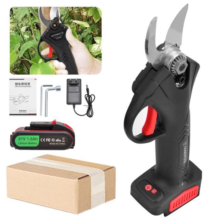 Équipé d'un moteur sans balais en cuivre pur 3150 haut de gamme et d'un diamètre de coupe de 40 mm, il permet d'effectuer des coupes précises jusqu'à 1,6 pouce. Idéal pour tailler les arbres et les fleurs dans les jardins, les vergers et les parcs, c'est le cadeau parfait pour les jardiniers professionnels et les amateurs de jardinage. Chargement rapide et pratique : le sécateur sans balais VIOLEWORKS 21 V est livré avec un chargeur à prise européenne qui permet un chargement rapide et pratique Avec sa capacité de coupe allant jusqu'à 30 mm de diamètre, il facilite la taille des branches et des plantes. Équipé de deux batteries, il offre une autonomie de 4 à 5 heures, permettant de travailler sans interruption Grâce à leur recharge rapide en 1 à 2 heures, ils offrent 4 à 6 heures de fonctionnement continu, ce qui vous évite de vous soucier de tomber en panne de batterie. FoundGo 30 mm Sécateur Électrique sans Fil Professionnel,Diamètre de Ils sont également équipés d'un écran LED intuitif innovant, qui affiche en temps réel le niveau de charge des batteries et le temps de coupe. 【Contenu de l'emballage】1 sécateur à batterie, 2 batteries au lithium 2000 mAh, 2 lames SK5, 2 clés, 1 chargeur rapide, 1 pierre à aiguiser, 1 étui de transport. Secateur Telescopique Secateur Electrique Sans Fil Avec 2 Mètres Perche Télescopique: Sécateur Électrique Avec 2 X 2000mAh Batterie Élagueuse, Diamètre De Coupe 25-50 Mm Et Secateur De Jardin Pour Hedge, Arbre, Fruits 【Efficacité de coupe précise】Notre sécateur sans fil à batterie offre une force de coupe exceptionnelle, avec une vitesse pouvant atteindre 21 000 tr/min et une puissance de coupe allant jusqu'à 1,5 T. 【Puissance et efficacité inégalées】 Notre sécateur électrique est équipé d'un moteur sans balais robuste de 600 W, offrant une puissance et une efficacité inégalées. Grâce à sa coupe précise et à sa technologie de pointe, il effectue sans effort plus de 1 000 coupes.