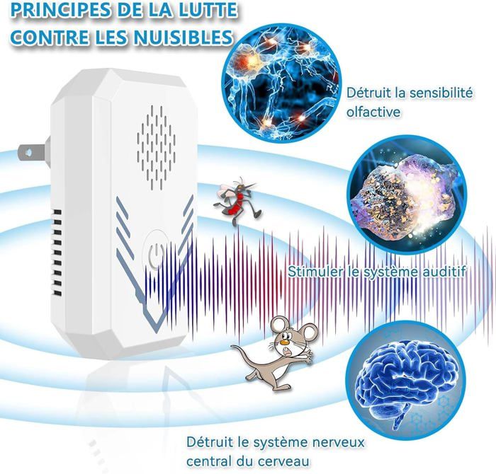 Répulsif Ultrasons Souris Rats Ultrason Souris Et Rats (6 Paquets)-Ultrason Moustique Repulsif-Repulsif Ultrasons Rats-Repulsif Piege A Rat Il suffit de la poser au sol et de la mettre en marche. Ziwu Répulsif anti-rongeurs à ultrasons à 360° avec 9 luières... 3 4. Ultrason Souris et Rats - INNOVTEC - 360° avec PIR 300 M² Large Portée Ultrasons Anti Rongeurs pour Souris Araignée. 3,9 / 5. 32 avis. à volonté 🔇Lumière verte : ondes ultrasoniques de 22 à 36 kHz. Après 4 semaines d'utilisation, votre espace devrait être débarrassé des souris Ultrason Souris et Rats - 360° -Répulsif pour souris - Ultrason Souris Lorsque l'appareil est allumé, appuyez sur le bouton d'éclairage séparé pour activer les neuf LED blanches clignotantes par cycles de 30 secondes à des vitesses variables, dissuadant efficacement de nombreux nuisibles, notamment les rats, les souris, les taupes, les écureuils, les araignées et les fourmis 🐭Êtes-vous très en colère parce que vos meubles ont été rongés par des souris ou des cafards ?🐭Êtes-vous très anxieux parce que votre maison est remplie de rats qui interfèrent avec votre vie quotidienne ?💯Le répulsif à souris à ultrasons résoudra efficacement ce problème. De plus, l'ultrason à souris dispose de 9 lumières stroboscopiques indépendantes pour une protection supplémentaire la nuit. 🔇Lumière bleue : fréquence variable de 22 à 36 kHz + onde ultrasonique fixe de 25 kHz. La portée de détection maximale est de 200 mètres carrés et la distance optimale de 150 mètres carrés 🚫🐹【9 LED STROBOSCOPIQUES】Allumage et extinction faciles grâce à un bouton, fonctionnement indépendant du mode ultrasons. 📢Lumière rouge : déclenchée par le capteur PIR, émet un bip, plus efficace pour repousser les souris Il est largement utilisé dans la maison, la cuisine, la chambre, l'entrepôt, le jardin, les pépinières et les vergers, les parcs, etc.