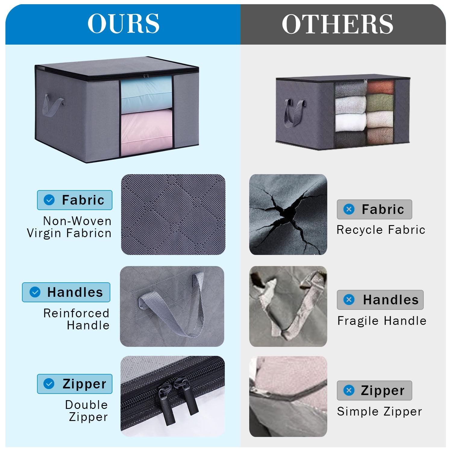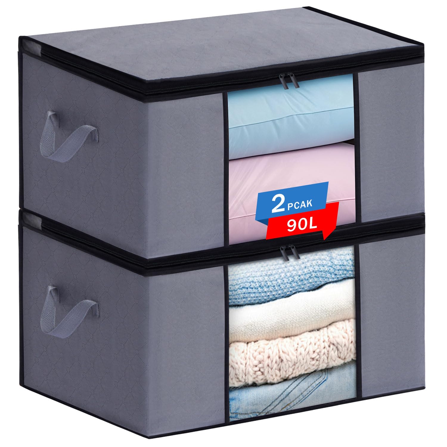 Il suffit de les essuyer avec un chiffon humide si elles sont sales. Maison - Découvrez notre offre Lot de 2 Sacs de Rangement sous Lit,90L Pliables Bacs de Rangement avec Poignée Renforcée,Organisateurs de Placards,100 x 50 x 18 Se glisse facilement sous le lit pour ranger les vêtements de saison ou les objets inutilisés. Sac Polyvalent - Il peut contenir des vêtements saisonniers, des couvertures, des couettes, des décorations de Noël, des oreillers, des jouets en peluche, etc. Service Amical - Si vous rencontrez des problèmes, n’hésitez pas à nous contacter. La boîte de rangement mesure 18 cm de haut et s'adapte à l'espace sous le lit, ce qui rend le rangement à la maison plus efficace. Design plat, facile à ranger sous le canapé, facile à ranger les couvertures, les jouets, etc. Sac de Rangement pour Vetement, 2PCS 90L Sac de Rangement pour Ils sont également faciles à nettoyer. Utilisez l'espace au fond de l'armoire pour ranger des vêtements ou des accessoires. Matériau Non Tissé Épais - Matériau non tissé haute densité sélectionné, plus épais et plus résistant à l'usure que les sacs de rangement ordinaires. Lot de 2 boîtes de 90L chacune, dimensions 100x50x15cm. Idéales pour ranger couettes, couvertures, vêtements hors saison, ou souvenirs. Fermeture éclair... Rangement Pour Vêtements Et Penderies Lot De 2 Sacs De Rangement Sous Lit,90L Pliables Bacs De Rangement Avec Sacs Non Tissé Fenêtre Transparente Grande Capacité - Chaque sac de rangement mesure 100x50x18cm, la capacité est de 90L, il peut stocker vos vêtements saisonniers, couvertures, couettes, coussins de jardin, oreillers, jouets.