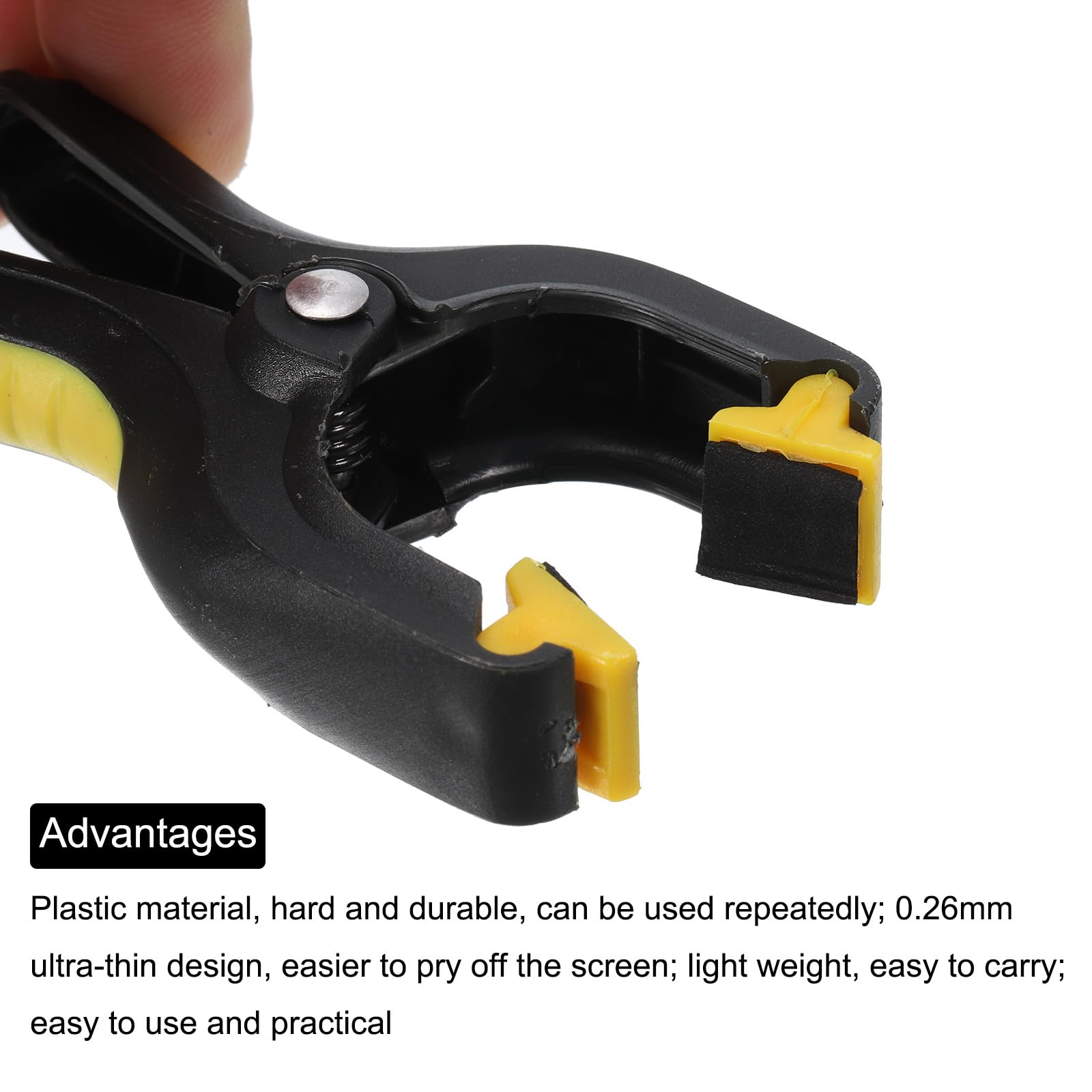 Que dois-je prendre en compte ?Veuillez faire attention à sélectionner le support de pince de téléphone avec la taille appropriée. Lorsque vous remplacez des pièces de téléphone, comme l'écran d'affichage du téléphone pour la maintenance et le remplacement, le support de support de réparation peut fournir un soutien stable. Les outils de remplacement de l'écran sont conçus pour rendre le processus de réparation de remplacement des écrans le plus simple possible. Ils sont parfaits pour les techniciens de réparation professionnels amateurs, offrant une solution fiable efficace pour les réparations d'écran Conçu avec une finition de couleur noire, cette pince de fixation d'écran LCD est adaptée à la plupart des téléphones, ce qui en fait un ajout polyvalent à votre collection d'outils de réparation Voir plus de détails Vous avez des questions à propos des informations du produit en français? Contactez-nous Signaler un problème avec ce... Lors de la réparation d'un téléphone, il peut être fixé sur la pince. Outil de démontage de réparation de téléphone portable,pince rotative Les pinces de fixation de l'écran LCD peuvent également être utilisées comme support de téléphone. Le support de pince de réparation de téléphone est professionnel et universel, et peut être utilisé pour différents modèles et marques de téléphones portables ; Le support de réparation de téléphone peut fournir un soutien stable pour le téléphone, bien fixer le téléphone, assurer que le téléphone ne tombera pas pendant le processus de maintenance ; Le support de serrage peut ajuster l'angle ; Multifonctionnel, aussi comme support de téléphone pour une visualisation quotidienne., Étapes d'installation : 1., Ouvrez le support de pince de téléphone ; 2., Ajustez à l'angle approprié ; 3., Fixez le téléphone sur le support ; 4., Effectuez les travaux de réparation du téléphone. Pince Universelle 4Pcs Fixation Universelle Pince Support Réglable Téléphone Mobile Réparation Outils LCD Affichage Écran Fixation Clip Tablet Outil Réparation Téléphone Portable Les pinces de fixation de l'écran LCD peuvent également être utilisées comme support de téléphone, en ajustant support à un angle approprié pour une visualisation facile. Qu'est-ce que c'est ?Le support de pince de réparation de téléphone portable est principalement utilisé pour la réparation de téléphones portables. Lors de la réparation d'un téléphone, il peut être fixé sur la pince pour des opérations de maintenance pratiques.