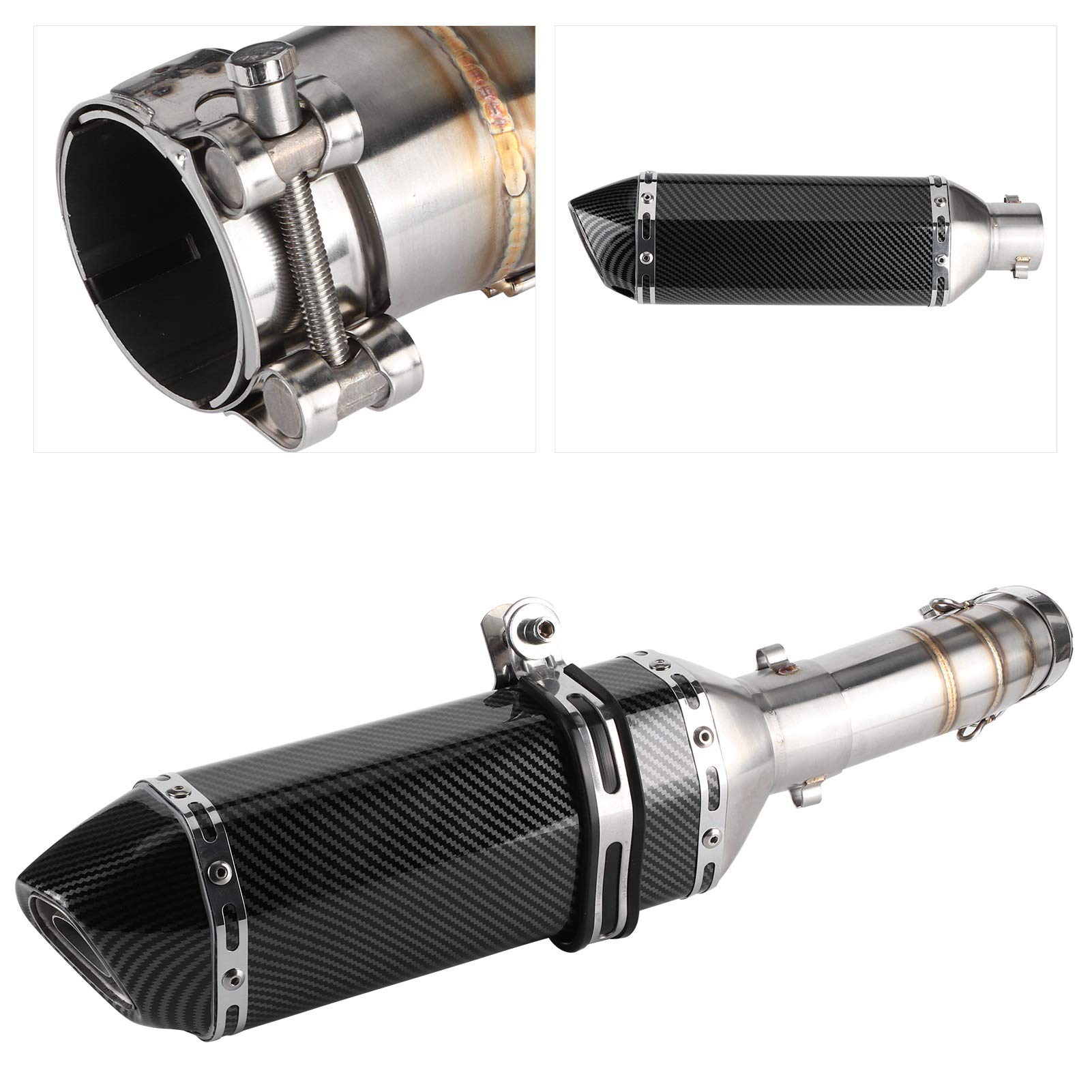 Apparence à la mode: la veste de silencieux et le couvercle d'extrémité avec un style en fibre de carbone peuvent améliorer le luxe de la moto. 51 mm/2 pouces Montage: Fit pour Ninja 400 2018-2020 Fit pour Z400 2018-2020 Liste des packages: 1 x tuyau d'échappement intermédiaire 1 x silencieux d'échappement Slip-On 1 x support de type Z 2 x crochet à ressorts 2 x crochet de soudage 1 x collier de silencieux Avec un manchon extérieur et un embout de silencieux de style fibre de carbone, ce qui peut améliorer le sens de luxe et d'élégance de votre moto. Style: Silencieux à enfiler en fibre de carbone Échappement de moto modifier le tuyau de liaison intermédiaire... Performances élevées: ce silencieux coulissant peut fournir une plus grande puissance, un couple plus élevé et un poids plus léger, offrant ainsi de bonnes performances, résistance et durabilité sur piste. Chicane Echappement Moto Système D'échappement Silencieux Slip-On Avec DB Killer + Mid Varadero 125 Facile à installer: le kit comprend un silencieux et un luminaire en fibre de carbone, et ne nécessite aucun autre équipement électrique, avec un déflecteur mobile et DB Killer. Facile à installer, simple à utiliser, aucun autre outil n'est nécessaire. Systeme Echappement Performance Moto Ninja 400 2018 2020 Silencieux D'échappement + Silencieux Slip-On Style Fibre De Autocollant Yamaha Compatibilité: Le tuyau central du système d'échappement et le kit de silencieux portable en fibre de carbone sont conçus pour Ninja 400 Z400 20182020., Technologie de soudage: le silencieux d'échappement est fabriqué en acier inoxydable 304 de haute qualité, qui présente une bonne dureté et une bonne résistance à la corrosion, n'est pas facile à rouiller et à déformer, et la technologie de soudage qui am 370 mm/14,6 pouces Diamètre d'entrée (extrémité du tuyau de descente): env. 44-47 mm/1,7x1,9 pouces Diamètre de sortie (extrémité du silencieux): env.