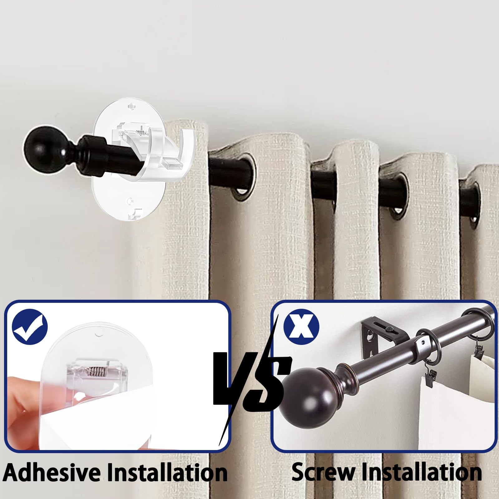La version noire, classique et élégante, s'intègre parfaitement dans les intérieurs sombres ou plus sobres. Support tringle de coté adhésif 4 pièces Le support tringle adhesif est inodore et sûr et sain. La version transparente offre un look frais et élégant, parfait pour les espaces privilégiant une ambiance minimaliste et aérée. Parfaits pour les résidences universitaires, les salons, les salles de bain, les chambres, les séjours ou les bureaux, les support rideau sont parfaits aussi bien à l'intérieur qu'à l'extérieur. Ils peuvent même servir à suspendre de petits objets comme des chapeaux, des serviettes et des parapluies. Pour les surfaces lisses comme le verre et le carrelage, aucun perçage n'est nécessaire. Support Rideau Lot De 8 Sans Percage, Porte Tringle Rideau Sans Percage Porte Rideau Sans Perçage Les support tringle adhesif conservent leur adhérence même après une utilisation fréquente et ne se détachent pas facilement. Facile à Utiliser: Vous pouvez choisir la méthode d'installation du attache rideau sans percage en fonction du type de mur. Une paire de supports pour tringle à rideaux (2 pièces) peut supporter jusqu'à 9 kg. Le design autocollant support tringle rideaux sans percage est étanche et convient aux surfaces lisses comme le verre et le carrelage Tringle Rideau Extensible Sans Percage 4 Supports Tringle Rideau Auto-Adhésifs Noirs - Sans Percage - Pour Surfaces Lisses - Max 4cm Diamètre Support Tringle A Rideaux Sans Perçage Percer 60 Cm Pour les surfaces rugueuses comme le ciment ou les cloisons sèches, des vis sont fournies, éliminant ainsi le besoin d'outils supplémentaires.