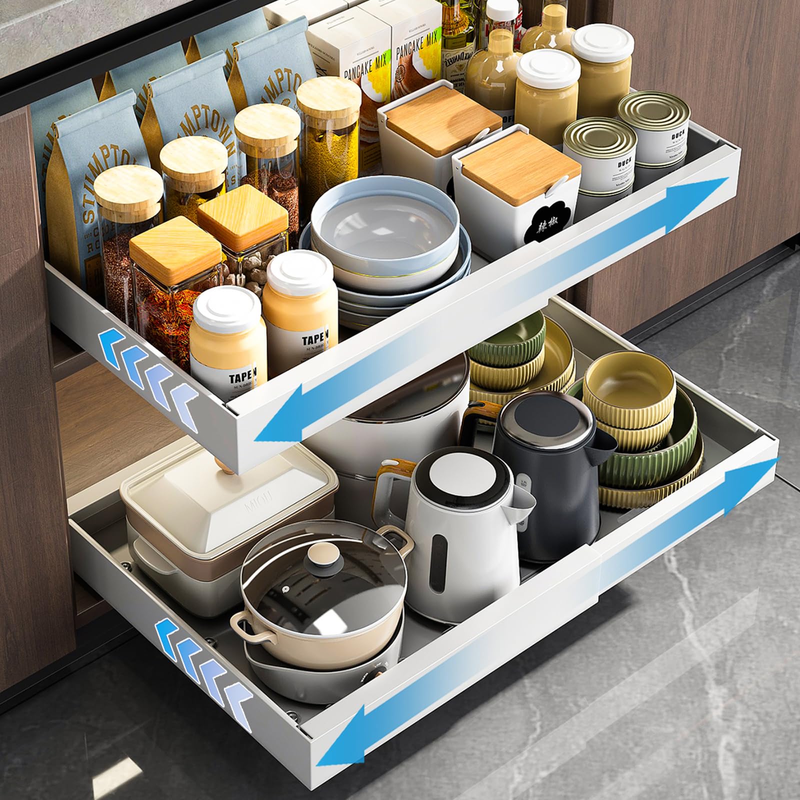 Avec une capacité de charge allant jusqu'à 30 kg, l'espace de rangement dans le placard est optimisé, tout en garantissant une manipulation fluide et confortable à tout moment. Le revêtement lisse assure une surface impeccable sans irrégularités. EN STOCK : Lot de 2 Tiroir Coulissant Cuisine Adhesif: Rangement Coulissant Placard Cuisine - Plateau Coulissant à Largeur Réglable (32-52 cm L x 42 cm P x 7.5 cm H) - Sans perçage Noir, MSISGM-K0265-250903010 pas cher. Livraison rapide partout en France LARGEUR RÉTRACTABLE : La largeur de notre tiroir télescopique en 2 pièces peut être personnalisée et la largeur peut être ajustée librement de 32 à 52 cm. Vous n'avez pas à vous soucier de trouver un tiroir à la bonne taille, il s'intégrera facilement dans votre placard 【Option de Montage Sans Perçage】L'étagère à tiroir offre deux options de montage : elle peut être collée directement dans l'armoire avec le ruban adhésif fourni sans percer, ou montée de manière classique avec des vis et les éléments de fixation inclus. IHomara Pack De 2 Organisateurs De Placard Extensibles Avec Adhésif, Tiroirs Coulissants Pour Cuisines, étagères Coulissantes Un manuel d'instructions détaillé en allemand et en anglais est inclus. 【Application Multifonctionnelle】Ce tiroir extensible multifonction crée un espace de rangement supplémentaire dans la cuisine, la salle de bain, le bureau, le garde-manger ou le vestiaire. LeKuni Extensible Tiroir Coulissant Cuisine 2 Piu00e8ces, Rangement Et Organisation De Cuisine Sans Poinu00e7on Pour L'organisation Des Armoires De Cuisine, Salle De Bain, Largeur Ru00e9glable De 32-52cm(Blanc 【Design Pratique et Extensible】Grâce à son design télescopique flexible, le tiroir peut être étendu à une longueur de 32 cm à 52 cm maximum, ce qui lui permet de s'adapter à différentes exigences. Ce tiroir extensible multifonction crée un espace de rangement supplémentaire dans la cuisine, la salle de bain, le bureau, le garde-manger ou le vestiaire. Il séduit par son design harmonieux sans soudures visibles.