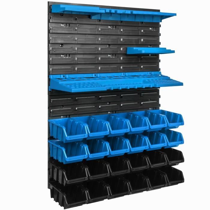 étagère Rangement Atelier TecTake® Étagère Garage Étagère Charge Lourde Meuble De Rangement Modulable En Métal 5 Tablettes Cuisine Equipee Complete Design réfléchi Les 28 boîtes noires et 28 boîtes rouges sont facilement amovibles et peuvent être empilées de manière compacte. Un vrai gain de place pour organiser votre outillage mécanique ou votre outillage de bricolage. Matériaux : polypropylène, acier Elle est aussi parfaite pour un rangement tiroir plastique ! Parfaite pour les bricoleurs, elle vous aide à garder votre atelier et votre etabli bien organisés et fonctionnels. Vous pouvez l'adapter selon vos besoins grâce à son système modulaire qui vous permet de changer sa configuration à tout moment. Que ce soit pour des pièces d'outillage mécanique auto ou pour des accessoires de bricolage, elle est prête à tout supporter. Description du produit: Vue d'ensemble optimale Apportez davantage d'ordre et d'organisation à votre atelier, votre garage ou votre cave à bricolage avec le magazine pour petites pièces extensible de tectake. Etagères de chez TecTake- Maintenant achetez jusqu’à jusqu’à Construction robuste La fabrication en plastique durable confère à cette étagère une robustesse et une longévité exceptionnelles, tout en étant facile à entretenir. Découvrez notre gamme de Etagère murale - TECTAKE au meilleur prix sur . Retrait Gratuit sous 2h en magasin, Livraison sur RDV, à l'étage et dans la pièce de votre choix Contenu de la livraison: 4 plaques murales, 28 boîtes rouges, 28 boîtes noires, 20 crochets, 2 supports pour tournevis, 2 supports pour embouts De plus, grâce au matériel de montage inclus, l'installation est rapide et simple, pour une utilisation immédiate. SOLIDE ET PRATIQUE : Conçue en plastique résistant, cette étagère de rangement s'entretient facilement et offre une robustesse idéale pour un rangement de visserie ou d'outils lourds. Capacité de charge par bac : 2kg, Poids : env., 3,1 kg Dimensions de chaque plaque murale (LxPxH) : env., 48 x 1,5 x 54 cm 2 ensembles de supports pour clés, Matériel de montage, Notice de montage Avec un total de 60 boîtes de rangement empilables, cet ensemble offre la solution idéale pour organiser visiblement et de manière compacte vis, clous, écrous et autres petites pièces Des supports pratiques pour clés, tournevis, pinces, embouts et autres accessoires sont également inclus. Elle permet de trier écrous, vis, outils et accessoires grâce à ses 56 bacs empilables noirs et rouges.