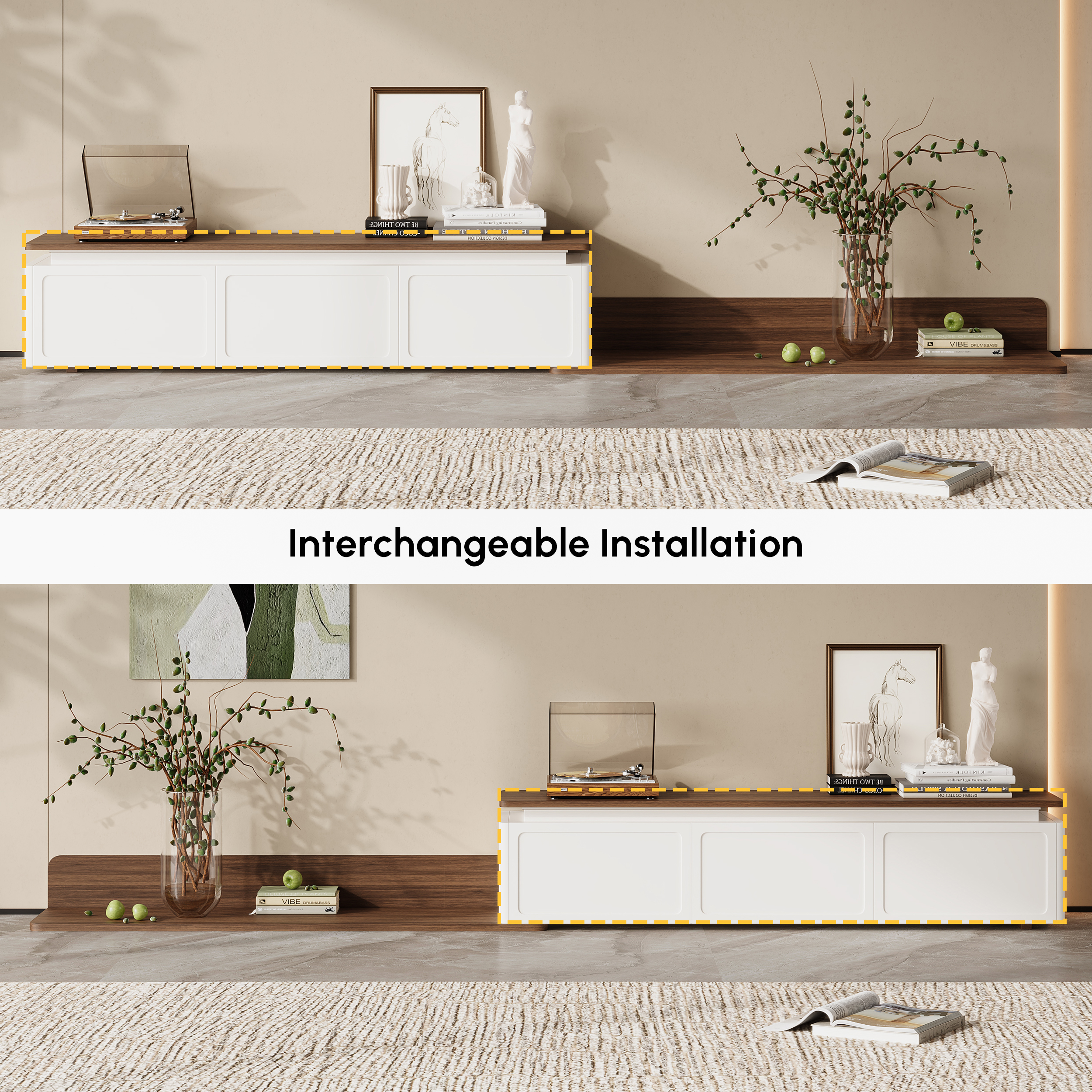 Assembler correctement pour éviter les risques de basculement. L'éclairage led intégré crée une atmosphère immersive. Espace de stockage d'équipement spacieux et flexible. Il est particulièrement adapté aux salons, chambres et même bureaux, alliant praticité et décoration Description du produit Découvrez le meuble TV parfait, non seulement fonctionnel mais aussi élégant. Construction robuste et stable : fabriqué en bois de qualité supérieure et un cadre en métal robuste, ce meuble TV garantit durabilité et fiabilité pour un usage quotidien. Éclairage LED intelligent : l'éclairage LED innovant permet de choisir parmi 9 modes de scène et 7 couleurs de lumière, contrôlable via une application pour une atmosphère personnalisée. Tiroirs pratiques en tissu : équipé de poignées faciles à tirer et de 3 tiroirs en tissu robuste, le panneau dur sur la partie inférieure offre une stabilité supplémentaire et empêche les déformations, offre un espace de rangement généreux dans 3 tiroirs de calicot rétro pratiques - Parfait pour les télécommandes, les consoles et autres petits objets. Réglable individuellement : équipé de pieds réglables en hauteur, ce support TV assure la stabilité et permet d'ajuster la hauteur en fonction de vos besoins. Lit avec 3 Tiroirs Redona • Structure en Pin massif • Kit-M Les pieds réglables et la sécurité anti-basculement assurent la stabilité, même sur des sols inégaux. Meuble Tv Moderne Led 184cm Pour Télé 80-espace De Rangement Ouvert En Boisporte D’armoire Blancpour Salon Chambre Meuble Tv Industriel Meuble TV 175x40x42cm Avec 2 Tiroirs, Compartiment De Rangement Ouvert, Charge Maximale 30kg Mdf Naturel 86516172 3 Tiroirs Tissu Design Moderne Des étagères stables pour vos appareils électroniques assurent un look bien rangé. Avec un design moderne et élégant, cette armoire s'intègre dans n'importe quelle maison et apporte de l'ordre et du style. 1 notice de montage (français non garanti) et accessoires Remarques : 1., Les mesures étant prises à la main, les tailles indiquées peuvent varier de 1 à 3 cm., 2., Toutes les images du produit sont prises avec des produits réels, mais en raison de l'influence du rayonnement solaire et d'autres facteurs, il peut y avoir certaines différences de couleur., 3., Si vous avez des questions sur notre produit, nous sommes toujours à votre disposition. Nous nous efforçons de résoudre vos problèmes rapidement et facilement. Avertissement De Sûreté Ne pas charger plus de 30 kg.