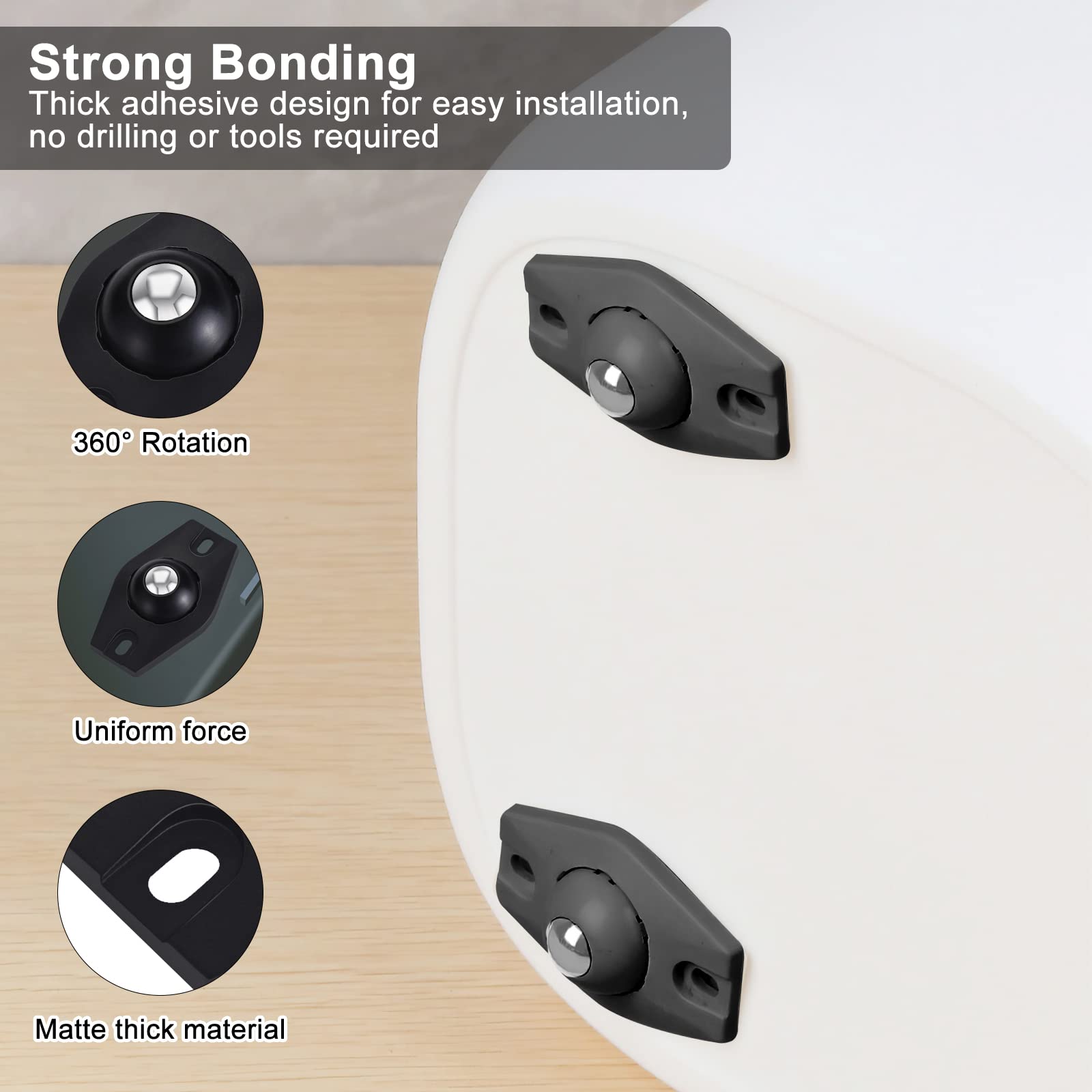 【Facile à Installer】 Les roulette pivotante ont deux méthodes d'installation, l'une est auto-adhésive et l'autre forage, vous pouvez le choisir en fonction de vos besoins. Sollbry 20 PCS Mini Roulette Auto-Adhésive Roulettes Idéales pour le rangement , elles vous permettent d'organiser d'accéder facilement à vos objets, tout en vous faisant gagner du temps de l'énergie.Ces roulettes autocollantes sont conçues pour transformer vos boîtes de rangement, meubles ou articles ménagers en un support mobile 【Matériel Premium】Cette roues pour meubles est en ABS et en acier inoxydable, très robuste, pas facile à casser et à déformer. Spécification : Couleur : Noir Matériau : ABS, acier inoxydable Taille du produit : comme indiqué sur l'image détaillée Détails du forfait : 20 x Poulie collante Remarque : 1., En raison de la mesure manuelle, la taille et le poids peuvent avoir une certaine erreur., 2., En raison de la différence entre les différents moniteurs, il peut y avoir une légère différence de couleur., 3., Si vous n'êtes pas satisfait de nos produits, veuillez nous contacter par e-mail et nous résoudrons votre problème dans les 24 heures. 10 Pièces Petites Roulettes En Plastique Mini Roulette Auto-Adhésive... Poulies de rotations vous servant pendant longtemps, quatre roulettes ensemble peuvent transporter 15 kg. Roulettes rotatives adhésives pour déplacer les supports et les bacs de stockage - Facile à installer, aucun outil nécessaire, aucun perçage requis. Roulettes auto-adhésives, Mini roues pivotantes, en acier inoxydable, poulie universelle à Rotation de 360 degrés pour le déplacement de meubles, 4 pièces – acheter les meilleurs produits dans la boutique en ligne