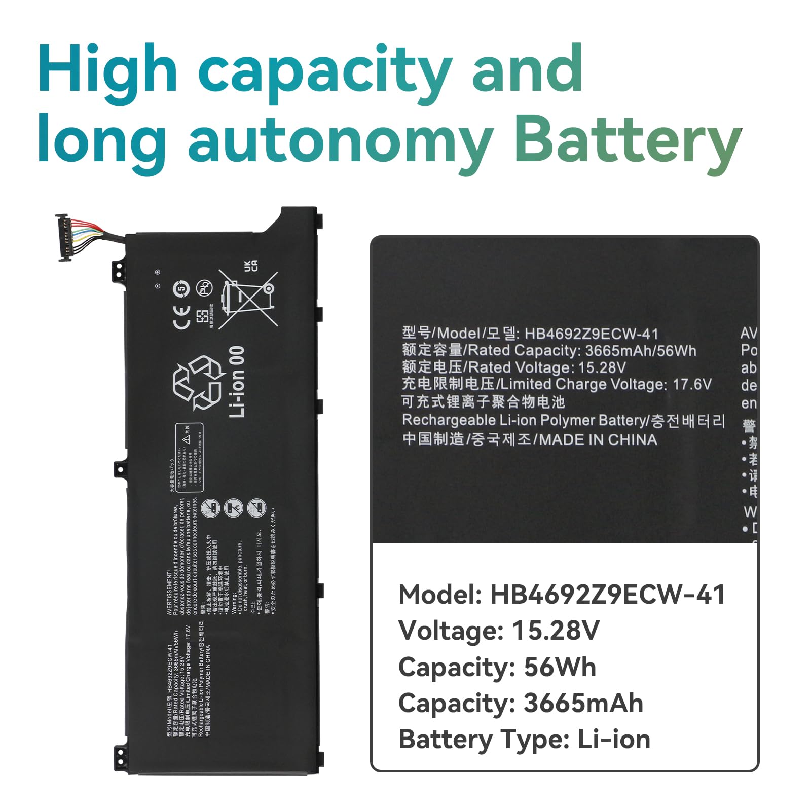 ✿【Sûr et fiable】Chaque batterie a passé le test de tension incorrecte, de court-circuit, de surchauffe interne, de surcharge et de décharge excessive, assurance de sécurité! Huawei MateBook D 14: Elegant 14-inch laptop with a very good battery... Batterie Sûre Testée Surcharge Court-circuit Bestome - Batería De Repuesto Compatible Con HB4692Z9ECW-41 Huawei MateBook D14 2020 HB469229ECW-41 NbB-WAH9P NbB-WAE9P Nil-waq9r 15,28 V, 3665 MAh/56 Wh Batterie 15.28v 56wh 7330mAh HB4692Z9ECW-22A HB4692Z9ECW-41 Laptop-Akkus für Huawei Honor MateBook D 14-53010TVS Magicbook 14 NBL-WAQ9R NBL-WAP9R NBLK-WAX9X