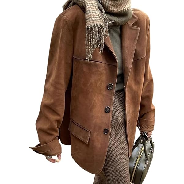 Deux poches latérales et une poche intérieure, cuir véritable, doublure en viscose, col à revers, manches longues, fermeture à boutons, marron. Conçu pour ceux qui apprécient le style sans effort des coupes surdimensionnées, ce manteau ample en daim est une pièce polyvalente qui peut être habillée ou décontractée pour toutes les occasions. Fabriqué à partir de daim de haute qualité, ce blazer offre une sensation douce et luxueuse à la fois élégante et durable. Blazer Marron Coupe Oversized Veste En Daim Marron Vintage Pour Femme - M - Rokit Style Casual Chic A&M Express Blazer oversize en cuir marron A&M Express pour femme - Manteau décontracté oversize au style streetwear La veste marron change votre allure quand elle se décline sur un toucher daim ou suède. Elle devient alors beaucoup plus décontractée et se porte volontiers avec un t-shirt blanc ou un sweat à capuche, un jean large rehaussé d’une ceinture à boucle, des Dr. Marten™, des Birkenstock femme ou des bottes Veste en cuir pour femmes, moto oversize, manteau biker en faux cuir, tenues d'automne, vêtements de mode - Chine Veste d'hiver pour femmes et veste coupe-vent prix