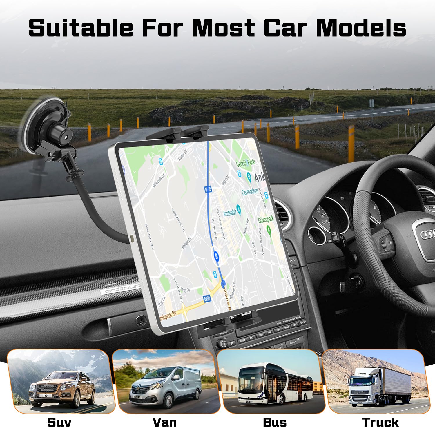 La combinaison de bras à ressort solides et de grandes mâchoires de serrage garantit que votre appareil reste sûr et stable même sur des routes accidentées. Le col de cygne est fabriqué en acier au carbone massif afin que votre appareil ne bouge pas facilement. Contenu de la livraison : 1 support iPad à ventouse pour voiture. La base et les mâchoires du support de tablette de voiture sont recouvertes de coussinets souples antidérapants pour protéger votre appareil des rayures et des gouttes. Compatibilité universelle, convient à tous les téléphones portables et tablettes avec écrans de 4,7 à 12,9 pouces. Support Voiture Tablette Cenawin Support De Tablette Avant De Voiture 360u00b0 Rotation Les ventouses peuvent être rincées à l'eau et séchées à l'air libre pour restaurer leur viscosité. Support de voiture rotatif multi-angle pour iPad : ce support de voiture pour iPad est livré avec une rotule pivotante et un bras en col de cygne, permet au support de voiture iPad d'être tourné à 360° et incliné à 180°. Support trépied rotatif à 360° : ce support pour iPad dispose d'une boule pivotante durable et d'un bras flexible en col de cygne qui permet au support de tablette de pivoter à 360° et d'incliner à 180 Rotation 360° Support Voiture Cenawin Support De Tablette Avant De Voiture - 360° Rotation Ventouse Tableau De Bord Rotation 360 Support de tablette de voiture amélioré : ce support de tablette de voiture dispose d'un bras col de cygne en acier au carbone (longueur : 20 cm, diamètre : 1,3 cm) avec une ventouse puissante qui peut être fixée au tableau de bord ou au pare-brise et maintient votre tablette ou téléphone portable en toute sécurité et à portée de main. Port de charge réservé pour que vous puissiez connecter le câble de charge à votre tablette/téléphone portable. Cenawin Support de tablette avant de voiture, rotation à 360°, avec col de cygne flexible de 7,8", ventouse pour tableau de bord, iPad Pro Air Mini, tablettes 4,7 à 12,9 Utilisation libre, vous pouvez fixer le support de tablette au tableau de bord/pare-brise de votre voiture ou sur un bureau. Ventouse puissante : la ventouse en TPU lavable et réutilisable est dotée d'un coussinet en gel d'aspiration rotatif, combiné avec le tampon adhésif VHB fourni, qui garantit que le support de tablette à ventouse adhère fermement aux surfaces les plus plates telles que les tableaux de bord de voiture, les pare-brise et les bureaux (ne convient pas pour le cuir et les surfaces incurvées). Cenawin Support de tablette avant à ventouse col de cygne pour iPad Pro/Air/Mini 4,7-12,9 Spécifications: Convient pour tablette de 7 à 12,9 pouces, navigation GPS sur les écrans de tablette est plus claire que sur le téléphone. Le système de fermeture empêche l'air de pénétrer dans la ventouse et de se détacher.