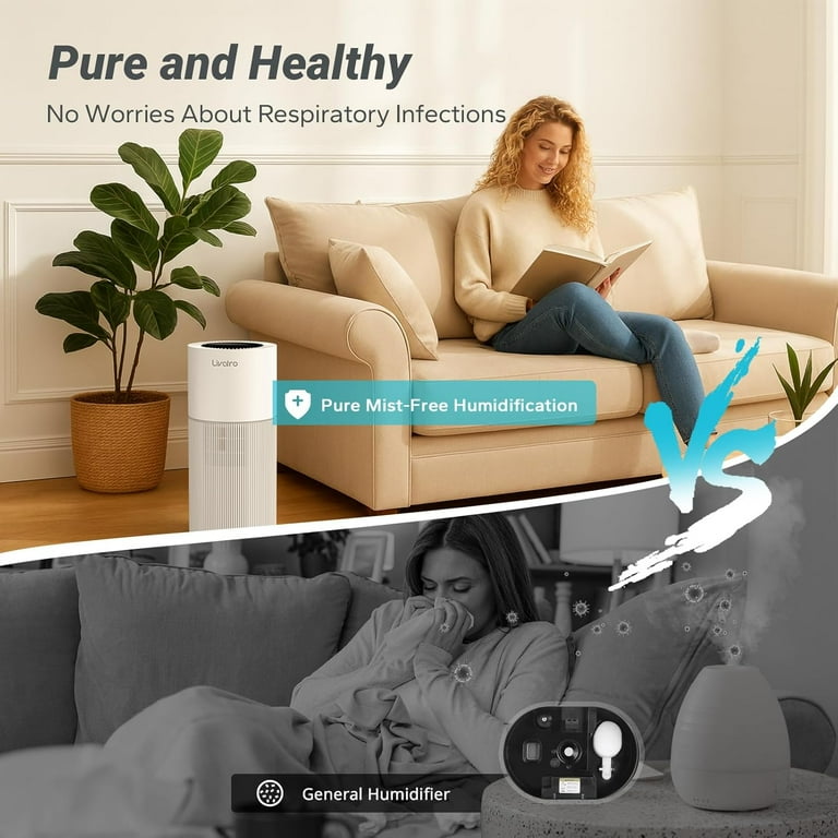 Humidificateur d'air pour chambre - SLEEPY Humidificateur Acier Inoxydable 304 Livatro Humidificateur D'Air Chambre Top-Fill, 3L Humidificateur à Humidificateur Chambre Bébé Silencieux En cas de dépôt de calcaire, ajoutez simplement du citron, de l'acide citrique ou du vinaigre et activez la fonction auto-nettoyage. 1 Acier inoxydable 304 2 3 niveaux de brume 3 Mode sommeil parfait 4 Multifonctionnalité, 1., Humidificateur à Brume Chaude 3L: Cet humidificateur d’air chauffe l'eau à 100°C pour diffuser une brume chaude pure, éliminant efficacement 99,97% des bactéries dans l'eau. Par rapport à un humidificateur ultrasonique traditionnel, il est mieux adapté aux nourrissons, femmes enceintes et personnes sensibles – protège la santé respiratoire de toute la famille., 2., Double Verrouillage de Sécurité + Protection contre la Suréchauffe: Deux mécanismes de protection (verrou de sécurité du réservoir + verrou d'écran) équipent cet humidificateur d'air chambre pour éviter les brûlures causées par les enfants. Humidificateur à Brume Chaude 3L: Cet humidificateur d’air chauffe l'eau à 100°C pour diffuser une brume chaude pure, éliminant efficacement 99,97% des bactéries dans l'eau. Aucun remplacement de filtre nécessaire, aucun dépôt de poussière blanche Comme beaucoup d'autres humidificateurs, il dispose d'un arrêt automatique en cas de manque d'eau ou de basculement, ainsi qu'un cordon d'alimentation anti-trébuche de 2m pour une sécurité domestique complète., 3., Réservoir d'Eau Amovible en Acier Inoxydable 304: Cet humidificateur d'air bébé possède un réservoir en acier inoxydable de qualité alimentaire 304 (sans BPA, sans odeur), 50 % plus résistant au tartre que le plastique. Cet humidificateur comprend trois modes de pulvérisation: pulvérisation continue, pulvérisation alternée et pulvérisation intermittente. La durée de pulvérisation peut aller jusqu'à 12 heures et la durée de pulvérisation intermittente jusqu'à 24 heures La nuit, cet humidificateur plante fonctionne en Mode Nuit (LED éteinte + <Niveau sonore bas) pour un fonctionnement silencieux. Aucun remplacement de filtre nécessaire, aucun dépôt de poussière blanche.