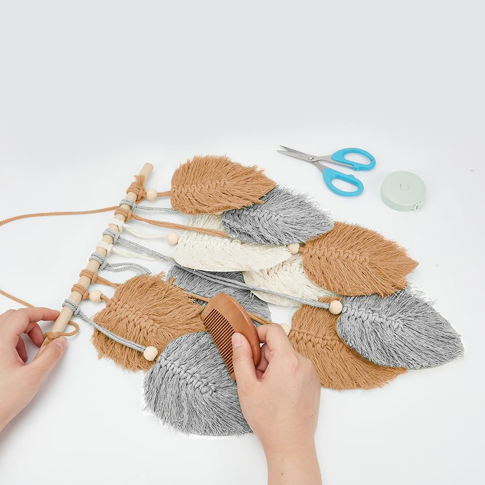 Styles bohème et nordique:la suspension murale en plumes de corde de coton convient à n'importe quelle pièce et à n'importe quel style, de la chambre au bureau, du style bohème au style de ferme moderne, ça se marie parfaitement. Kit Macramé Plume:Le kit macramé bohème comprend un rouleau de 20 mètre de corde en coton blanc, un rouleau de 15 mètre de corde en coton jaune, un bâton en bois de 30cm , et toutes les autres outils nécessaires pour terminer le tissage. il peut apporté de la joie et de la chaleur à n'importe quel espace. FREEBLOSS 2 Ensembles Kit de Bricolage en Plumes de Macramé Excellente qualité:notre ensemble de suspension murale en plumes est fabriqué à partir de corde de coton de haute qualité, qui est de très bonne qualité en tant qu'article tissé à la main, qui peut être utilisé pendant une longue période sans surprises. Mindful Making - Kit macramé - Décoration murale - Kits adultes - DMC Kit Tricot Adulte FREEBLOSS Kit De Macramé à Faire Soi-même Pour Adultes - Motif Feuilles Bohème - Macramé - Décoration Murale Pour Dortoir - Instructions Incluses (français Non Garanti Kit Macramé Débutant Parcourez notre sélection de macramé plume kit : vous y trouverez les meilleures pièces uniques ou personnalisées de nos boutiques