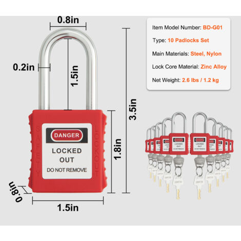 Ce cadenas est robuste, compact et léger et convient pour les applications de verrouillage électriques, hydrauliques ou pneumatiques en intérieur et en extérieur 【Étiquette inscriptible】 : la poutre de verrouillage en acier est chromée et équipée d'une étiquette inscriptible qui peut être effacée et écrite à plusieurs reprises pour une utilisation facile. Cadenas De Sécurité Nylon Lot De 10 Cadenas De Securite 38 Mm/1,5 Po, Isolation Cadenas Industrie Chimique électrique Description du produit Lot de 10 Cadenas de sécurité 38 Mm en Nylon avec Cadenas Loto avec 20 Clés pour Alimentation Chimique (Rouge) La serrure est fabriquée en thermoplastique non conducteur de haute qualité, avec une excellente résistance à la température et à l'abrasion. 【Sûr à utiliser】 : conforme à un employé, un verrou, une instruction clé, peut écrire des étiquettes pour le marquage, plus sûr. Large gamme : 10 ensembles de cadenas à clé conformes à un employé, une serrure, une instruction à clé, peut écrire des étiquettes pour le marquage... Cadenas SafeKey, Avec Arceau En Acier, X3, Hauteur Intérieure De L Arceau 38 10 Mm 3118360 【Haute performance】 : fabriqué en nylon renforcé de plastique technique, adopte une conception de coque intégrée, qui est plus résistante aux différences de température (-57 ℃ + 177 ℃) et aux chocs. 【Matériau de qualité supérieure】 : le corps de la serrure est antidérapant et le corps de la serrure est en nylon technique, qui ne change pas de couleur, ne se décolore pas, résiste à la corrosion et aux températures élevées. Sûr à utiliser : conforme à un employé, un verrou, une instruction clé, peut écrire des étiquettes pour le marquage, plus sûr., Description : 1., Fabriqué en nylon PA renforcé de plastique technique, adopte une conception de coque intégrée, qui est plus résistante aux différences de température (-57 ℃ + 177 ℃) et à la résistance aux chocs., 2., La serrure est spécialement conçue pour les applications de consignation et d'étiquetage, et possède un cylindre dédié aux cadenas de consignation., 3., La poutre de verrouillage en acier est chromée et équipée d'une étiquette inscriptible qui peut être effacée et écrite à plusieurs reprises pour une utilisation facile., 4., Le corps de la serrure est antidérapant et le corps de la serrure est en nylon technique, qui ne change pas de couleur, ne se décolore pas, résiste à la corrosion et aux températures élevées., 5., Conforme à un employé, une serrure, une instruction clé, peut écrire des étiquettes pour le marquage, plus sécurisé., 6., La serrure est fabriquée en thermoplastique non conducteur de haute qualité, avec une excellente résistance à la température et à l'abrasion.