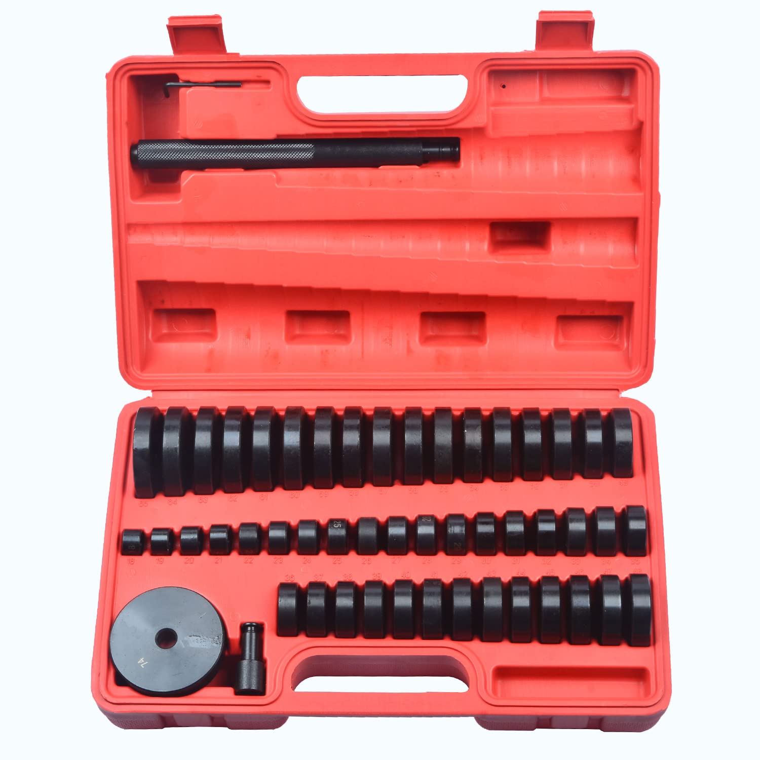 Installation précise : permet une installation précise et sûre des roulements de roue, assure un bon alignement et réduit le risque de défaillance prématurée du roulement. Contenu de la livraison : 3 tailles de tournevis/poignées : petit (4-1/2 de long x 7/16 de diamètre), moyen (5-1/2 de long x 5/8 de diamètre) et grand (6-1/4 de long x 7/8 de diamètre), avec surface striée pour une adhérence supplémentaire lors de l'utilisation. 【Construction durable】 Fabriqué à partir de matériaux de haute qualité pour plus de résistance et de durabilité, ce qui garantit des performances durables et la capacité de faire face à des tâches difficiles. Jeu d'outils pour roulements de roues, pour VAG, coquille 85 mm, 17 pcs | Démontage palier à roue | Direction et essieu | Outillage automobile | Brilliant Tools Efficacité du temps : accélère le processus d'échange de roulement en fournissant tous les composants nécessaires dans un kit, ce qui peut gagner du temps et réduire les coûts de main-d'œuvre. Joint d'huile pour roulements de roue, avant, 2 pièces Kit Mécanique Auto KIT DOUTILS DE MONTAGE DE ROULEMENTS ET DE JOINTS, 10 PCS 40 - 81 MM SILVERLINE 486869 Kit Montage Roulement Bague roulement de roue pivot Nissan Infiniti original OEM 40588G9500...