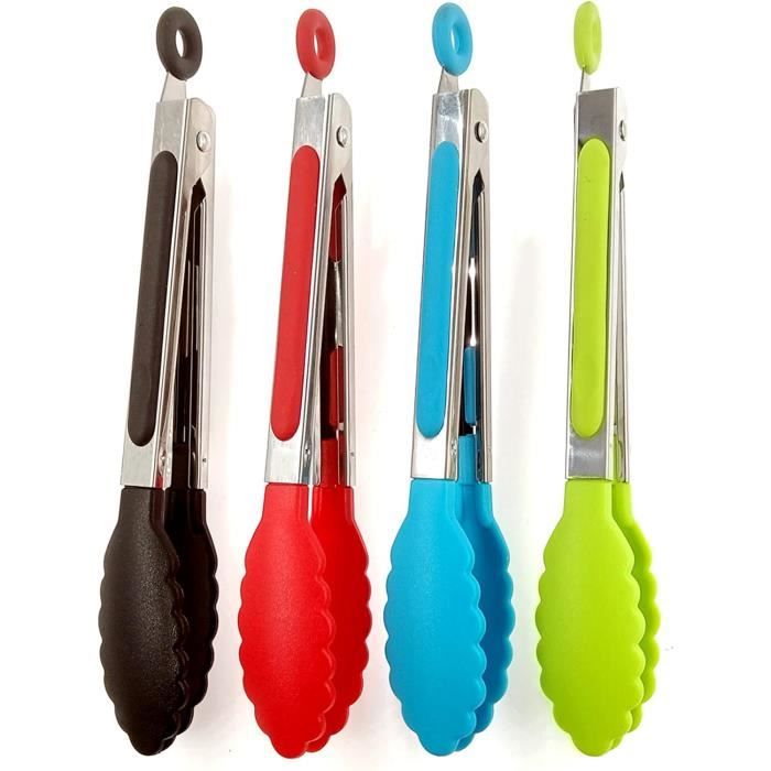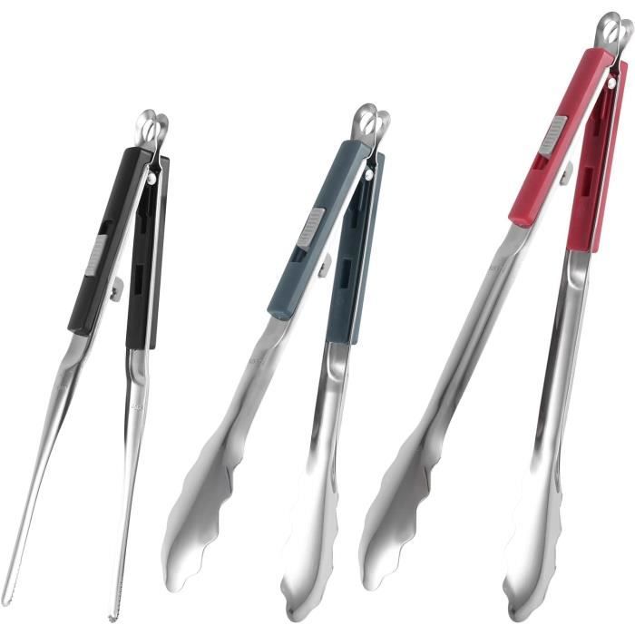 Matériaux : silicone et acier inoxydable. Soulevez et retournez avec facilité, évitez les germes et évitez le risque de brûlures. Résistant à la chaleur jusqu'à 250 °C. Utilisations multiples : parfaites pour les tâches de cuisine quotidiennes ou une utilisation en extérieur, vous pouvez avoir ces pinces de cuisine pour ramasser des cubes de melon, des raisins, des tomates, des tranches d'oignon, des tranches de pêche, des cubes de fromage, des olives, du brocoli, de la laitue, du chou-fleur et des petites carottes. Poignées ergonomiques résistantes à la chaleur : fabriquées en acier inoxydable épais de haute qualité et en silicone sans BPA, résistantes à la chaleur jusqu'à 250 °C, les pinces pour la cuisine ont des poignées ergonomiques avec rembourrage en silicone pour garantir une bonne prise en main et un bon contrôle, éviter les brûlures et fournir un plus grand confort. Pinces Cuisine Acier Inox E42033 Pinces De Cuisine Et Barbecue-Pinces De Service, Inox Et Embouts Pinces Barbecue Lave-vaisselle * 1 pince de 30,5 cm : poignées de 30,5 cm. Pince longue pour garder les mains loin de la chaleur pendant la cuisson, le fumage ou la friture. Facile à nettoyer et passe au lave-vaisselle – Le nettoyage est un jeu d'enfant – il suffit de les essuyer sous l'eau chaude ou de les mettre au lave-vaisselle. Lorsque vous le verrouillez, vous pouvez utiliser l'anneau de traction pour l'accrocher au mur ou mettre dans le tiroir pour économiser de l'espace. Fabriquées en acier inoxydable de qualité alimentaire, ces pinces comprennent une pince de cuisson standard de 9 cm et une pince à barbecue de 12 cm, offrant polyvalence et durabilité pour répondre à divers besoins culinaires. Légères mais robustes, elles sont idéales pour retourner, saisir, tourner ou servir les aliments avec précision Caractéristiques : Fini les doigts brûlés, plus de désastres dans la cuisine. Vous trouverez à quel point il est pratique. Mécanisme de verrouillage et design à tirer vers le bas : pince de cuisine en métal parfaite pour la cuisine. Vous pouvez verrouiller et accrocher sur votre cuisine après utilisation. L'ensemble de pinces de cuisine BAIYING résiste à l'épreuve du temps Qu'est-ce qui rend les pinces de cuisine BAIYING différentes ? √ 100 % silicone de qualité alimentaire sans BPA : pour garantir votre santé et celle de votre famille Jeu de pinces de cuisine - 3 pièces Contenu de l'emballage : * 1 pince de 22,9 cm : poignées de 22,9 cm.