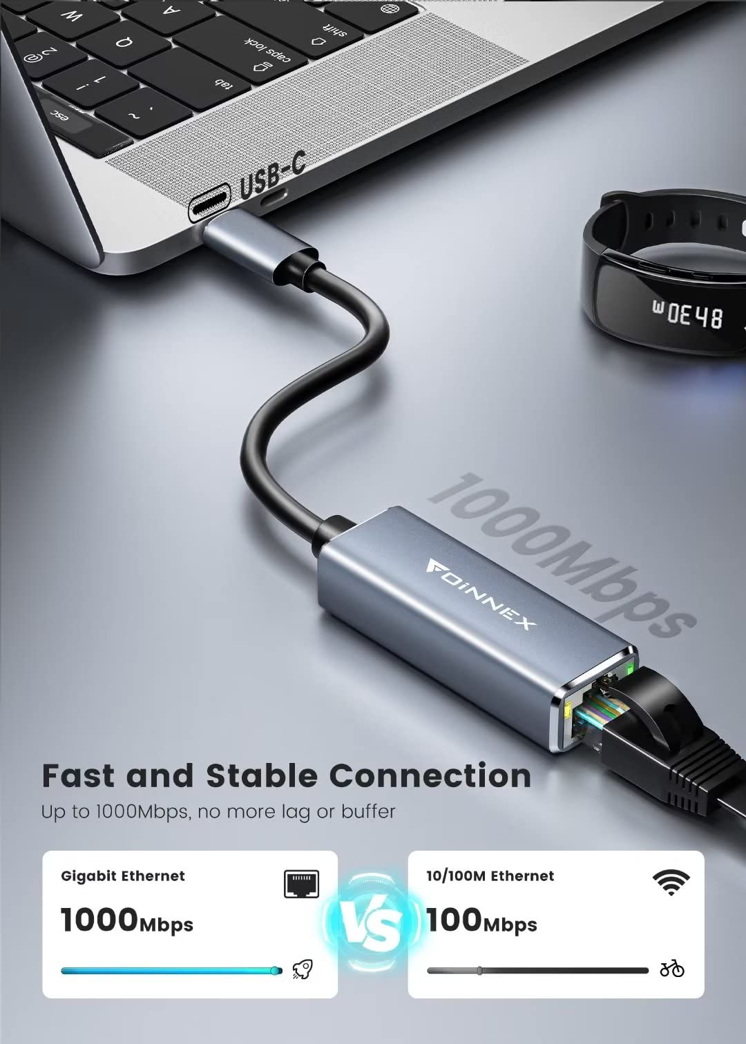 Description du produit Duttek USB C vers Ethernet L'adaptateur Le câble USB C vers RJ45 prend en charge des vitesses de transfert de données de 1000 Mbits/100 Mbps. Ce câble adaptateur réseau Type-C vers LAN Gigabit Ethernet (RJ45) prend en charge les téléchargements haut débit sans interruption Oubliez le Wi-Fi instable !, Prend en charge la négociation automatique 10/100/1000 Mbps pour une compatibilité maximale avec les routeurs et les commutateurs., Plug-and-Play Compatible avec les adaptateurs USB C vers Ethernet 2,5 Go (vendus séparément). Adaptateur Ethernet Ewent USB C Gigabit 1000Mbps, Carte Réseau LAN Type USB-C Ve Dongle USB-C Vers RJ45 Gigabit Idéal pour Apple iPhone 15, tablettes, box TV, projecteurs et consoles de jeu comme Steam Deck. Léger mais durable, avec un connecteur RJ45 confortable qui empêche les déconnexions. Se glisse facilement dans les sacs ou les poches d'ordinateur portable. Pas de tracas d'installation pour la plupart des systèmes modernes. DUB-E130 Adaptateur réseau USB-C 3.0 vers Gigabit Ethernet | D-Link France Connexion filaire stable : Oubliez le Wi-Fi peu fiable. Prend en charge tous les modes d'économie d'énergie USB 3 (U0, U1, U2 et U3,). Adaptateur Rj45 ADAPTATEUR RÉSEAU LAN Ethernet Gigabit Type-c 1000 USB-C Mbps...
