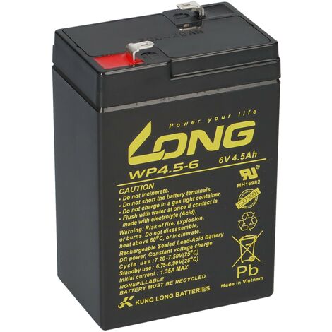 Bateria de Chumbo (Pb) 6V 4.5Ah - Kung Long WP4.5-6 Vous avez ainsi votre porte-monnaie et l'environnement. Batterie Sans Entretien Batterie Au Plomb Kung Long WP0.8-12, 12V, 0.8Ah Avec Connecteur JST Dimensions 70x47x101 Mm Kung long batterie au plomb wp4., 5–6, 6 V/4,5 Ah/27wh, plomb-acide, noir Marques batterie ne nécessitant pas d'alimentation dans l'industrie, haut de gamme pour systèmes d'alimentation de secours (systèmes de l'onduleur) ainsi que dans la technique de sécurité et alarme. ★ Plus de 25 ans d'expérience : en tant que l'un des plus grands allemande directement importateurs de batteries de batterie net dispose d'un large stock. Cette haute disponibilité des batteries en production de pointe, combinée avec un excellent rapport prix/performances, apprécions Nos clients dans de nombreux pays européens. DSK 10355 - Batterie au Plomb AGM Rechargeable scellée 6V 4,5Ah. Idéal pour Les Voitures et Les Motos électriques pour Enfants, Scooters, systèmes UPS, systèmes de sécurité. Le Gel ne se renverse Pas Ersatzakkusatz Batterie für USV APC SILCON DP310-BC ★ neukauf arguments en faveur d'une batterie de remplacement : un aux équipements coûteux n'est pas nécessaire. ★ Ce produit est tenue et en toute sécurité. ★ Batterie résistant et ne nécessitant pas marques haut de gamme pour utilisation dans les installations de l'approvisionnement en électricité, pour d'alimentation de secours et dans la technique de sécurité et d'alarme.