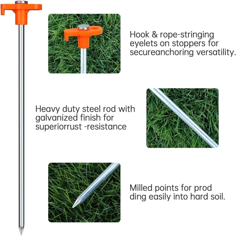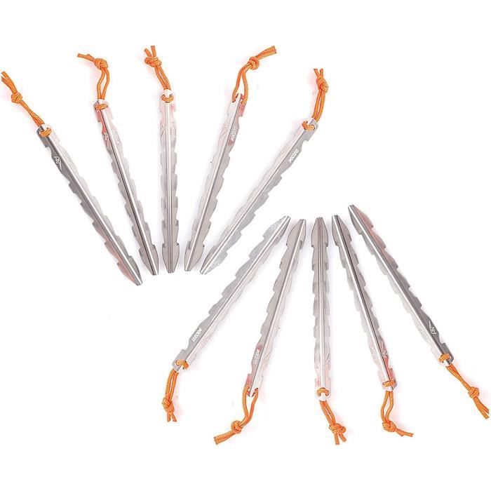 Lot de 10 piquets de tente de 21 cm de long, assez pour vos besoins quotidiens et faciles à transporter. Convient pour le camping, la randonnée, la pêche, le camping-car, la forêt, la prairie, les voyages et la randonnée, etc. Lot de 10 piquets de tente de 21 cm de long, assez pour vos besoins quotidiens et faciles à transporter. Convient pour le camping, la randonnée, la pêche, le camping-car, la forêt, la prairie, les voyages et la randonnée, etc Contenu : 10 piquets de tente., ● Matériau : fer + plastique Poids de l'emballage : 714 g. Piquets de tente Fer - 32 grammes - 10 pièces Piquets de tente en spirale, filetage en spirale et pointe en fer, perçage facile dans un sol solide, avec une meilleure adhérence. Les piquets de tente sont un ancrage indispensable pour les terrasses, tentes, auvents, terrasses, filets de jardin et bâches. Piquets Camping Fer 21cm 10 Piquets De Tente En Acier 21 Cm - Poignée En T Lot Piquets Camping Spirale