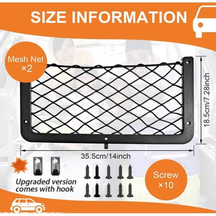 EN STOCK : CCYKXA 4 Pack Filet Coffre Voiture, Filet de Rangement de Coffre, Grande Taille 40 x 25 cm, Bouteilles, épicerie, Rangement Ajouter sur Les organisateurs pour Le Camion de Voiture, ML82660YXJ pas cher. Livraison rapide partout en France 【Installation Facile】Organiseur Filet Coffre Voiture Facilement Et Solidement Sur Le Côté De La Porte Avec Le Dos Le Dossier Ou D'autres Positions En Flanelle Sans Endommager L'intérieur Du Véhicule Lors Du Retrait (Vérifiez Cette Compatibilité Avant Commande). Rangement Voiture Frevoitna 4 Pcs Filet De Rangement De Coffre, Filet Coffre Filets Rangement Coffre Voiture Ces Filet De Rangement Pour Coffre Sont Fabriqués En Nylon Premium, Offrant Une élasticité Exceptionnelle Qui Résiste à La Déformation. Légers Et Portables, Ils Répondent Parfaitement Aux Besoins De Stockage Quotidiens Tout En Créant Un Espace Supplémentaire Dans Votre Véhicule. 【Organisation Optimisée】Idéals Pour Ranger Et Classer Gobelets, Documents, Livres Etc. Sac en Filet à Double Couche]: Fabriqué à partir de tissu Oxford de qualité supérieure, ce filet en maille pour siège arrière de voiture est très élastique... Filets rangement coffre voiture - 4 pièces, 40x25cm, élastiques 【Matériaux Haut de Gamme】Ces Filet De Rangement Pour Coffre Sont Fabriqués En Nylon Premium, Offrant Une élasticité Exceptionnelle Qui Résiste à La Déformation. 【Caractéristiques】Lot De 4 Filets De Rangement (40x25 Cm). Flexibles Et Résistants à L'usure, Leur Bordure Renforcée Et Leur Structure Double Couche Garantissent Une Excellente Durabilité.