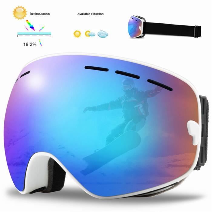 Masque de ski MXJ Gear YH277, masque de snowboard à porter par-dessus des lunettes, protection UV 400, masque de neige anti-buée pour hommes, femmes et jeunes adultes Motoneige, ski, patinage Caractéristiques : Matériau : monture en TPU durable + double lentille anti-buée Couleurs disponibles : Monture noire - Lentille argentée - VLT 13 % Monture blanche - Lentille argentée - VLT 13 % Monture noire - Verres Full Revo rouges - VLT 16 % Monture blanche - Verres Full Revo roses - VLT 16 % Monture blanche - Verres Full Revo bleus - VLT 16 % Monture noire - Full Revo doré - VLT 16 % Monture noire - Full Revo violet - VLT 16 % Monture noire - Full Revo bleu - VLT 16 % Monture noire - Verres argentés (13 %) + verres jaunes - VLT (78 %) Monture blanche - Verres argentés (13 %) + verres jaunes - VLT (78 %) Caractéristiques : 1., Lunettes de ski à monture TPU OTG : monture TPU durable (résistante au froid) adaptée au port de lunettes — pas besoin de lunettes supplémentaires pour ces lunettes de ski., 2., Lunettes de snowboard à sangle antidérapante : sangle antidérapante réglable pour maintenir les lunettes de snowboard en place ; faciles à nettoyer., 3., Lunettes de ski à verres amovibles : verres antibuée double couche (amovibles) pour lunettes de ski ; protection UV à 100 % contre les rayons nocifs., 4., Lunettes de ski et de snowboard Full Revo : le revêtement Revo réduit les reflets et améliore le contraste, idéal pour les lunettes de ski et de snowboard., 5., Lunettes de ski ventilées : les aérations intégrées gardent les lunettes de ski au sec et empêchent la formation de buée, pour une vision claire toute la journée. JQF Gear Masque de Ski,YH227 Lunettes de Ski OTG pour Unisexes Ajustables Anti Buée Anti-Poussière Coupe-Vent Anti-UV Lunettes de Snowboard pour Sports Hiver (01-Argent/Noir VLT 13) avec par Kelkoo - Publicité 【Compatible avec Tous Les Casques de Ski et Mtériau de Haute Qualité】 Les lunettes de ski sont dotées d'une monture en TPU souple et sûre de haute qualité, durable et flexible. 【Conception OTG (au-dessus des lunettes) pour les Lunettes de ski】Grâce à leur conception OTG (au-dessus des lunettes), les lunettes de ski vous permettent de porter vos lunettes sous les lunettes de ski, et les lunettes de ski conviennent également à ceux qui portent des lunettes. La conception réglable des lunettes de snowboard convient à différents âges et tailles de tête, aussi bien pour les hommes que pour les femmes. Masque Motoneige Grand Angle Masque - Lunettes Ski,lunettes De Ski Professionnelles,Double Couche Lunettes De Ski Otg Nos lunettes de ski sont compatibles avec tous les casques, et la sangle élastique extra-longue et élargie à haute densité amovible est conçue pour garantir qu'elles restent bien fixées sur votre casque de ski et ne glissent pas, vous offrant ainsi une tranquillité d'esprit totale. Elles sont parfaites pour le ski, le snowboard, le patin à glace, l'escalade, la moto/le VTT, et bien plus encore. Profitez des sports d'hiver avec les lunettes de ski MXJ Gear. 【Couleur Revo Intégrale pour les Lunettes de Snowboard】Nos lunettes de ski/snowboard bénéficient d'un design Revo intégral : elles réduisent l'éblouissement causé par la neige, améliorent le contraste du terrain et facilitent la détection des bosses/obstacles. Masque de Ski Torrent OTG HB 09 BLACK / BLUE Le système de ventilation professionnel et confortable à double sens dissipe la chaleur, optimise la circulation de l'air à l'intérieur du verre et le maintient anti-buée lorsque vous skiez ou faites du snowboard. Le masque ski femme, enfant ou homme, doit pouvoir filtrer 100 % des rayons UV, les plus dangereux pour la vue, et il doit aussi être antichoc. Masque snowboard...