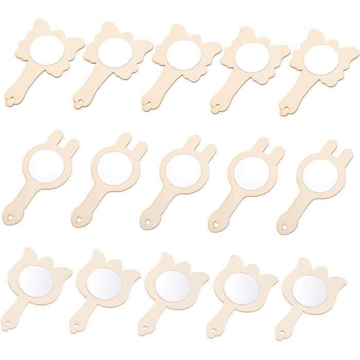 12 Pièces En Bois De Poche Miroir Inachevé Jouets En Bois Enfants Miroirs Maquillage Poignée Miroir Chambre Fille Miroir De Maquillage | Jeux En Bois | JaBaDaBaDo | Marques | Elements Miroir Réglable Enfant DESIGN CRÉATIF: Le petit miroir adopte une forme ronde avec des oreilles de chat, son apparence naturelle et mignonne laisse une impression durable. Miroir de maquillage en bois pour filles Doté d'une réflectivité et d'un rendu des couleurs élevés pour une beauté naturelle. PETIT MIROIR rectangulaire dans un cadre en bois L'angle est réglable, rotation à 90° fluide. BOIS HAUT DE GAMME & DURABILITÉ: Fabriqué en bois résistant avec structure stable et durable. MIROIR HD: Réflexion haute définition et clarté optimale, idéal pour le maquillage des fillettes APPLICATIONS MULTIPLES: Le miroir de maquillage est parfait pour les chambres d'enfants, les chambres à coucher, les salons, et constitue également un cadeau élégant pour la famille et les amis. La base en bois épaissie assure la stabilité.